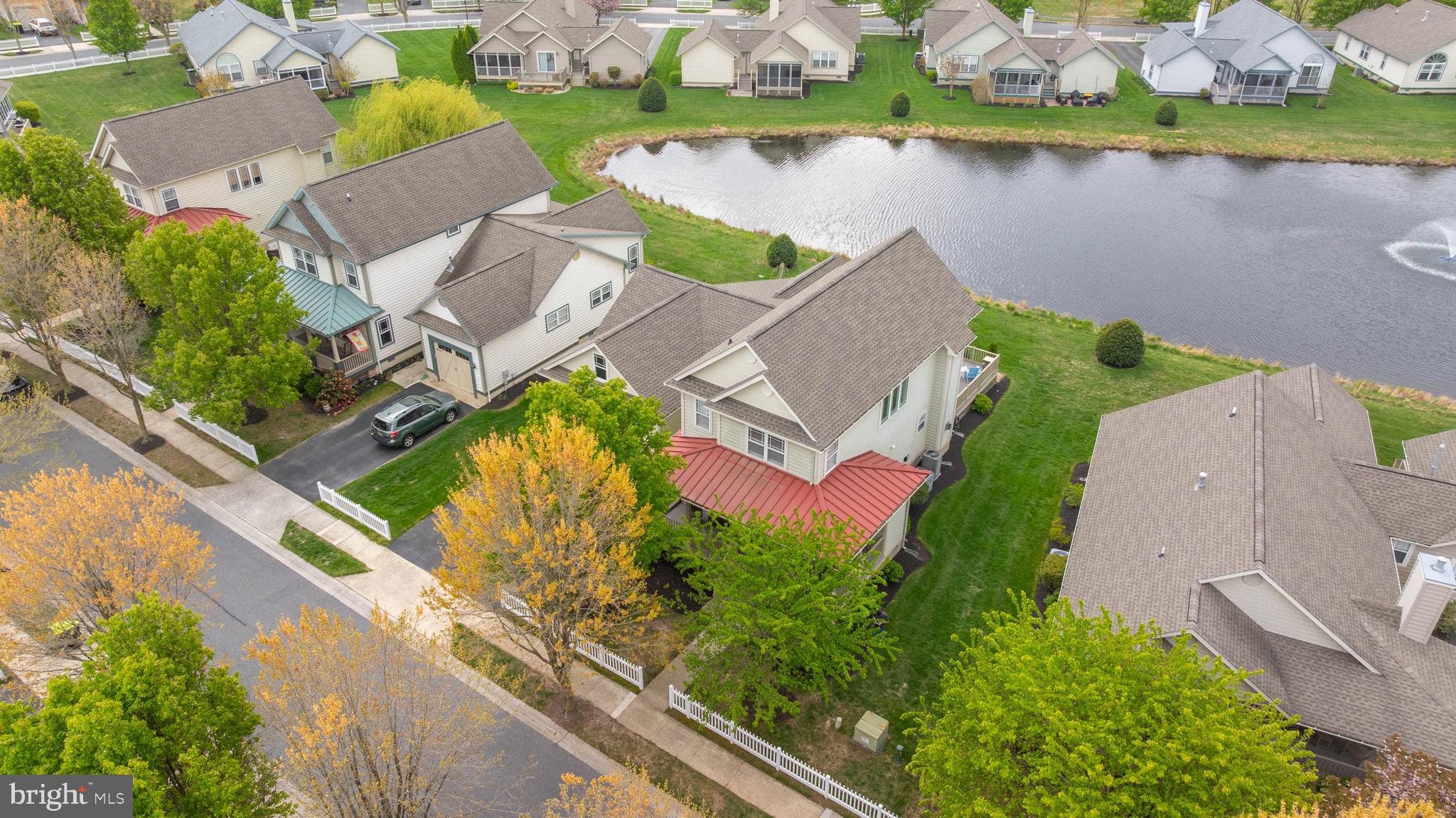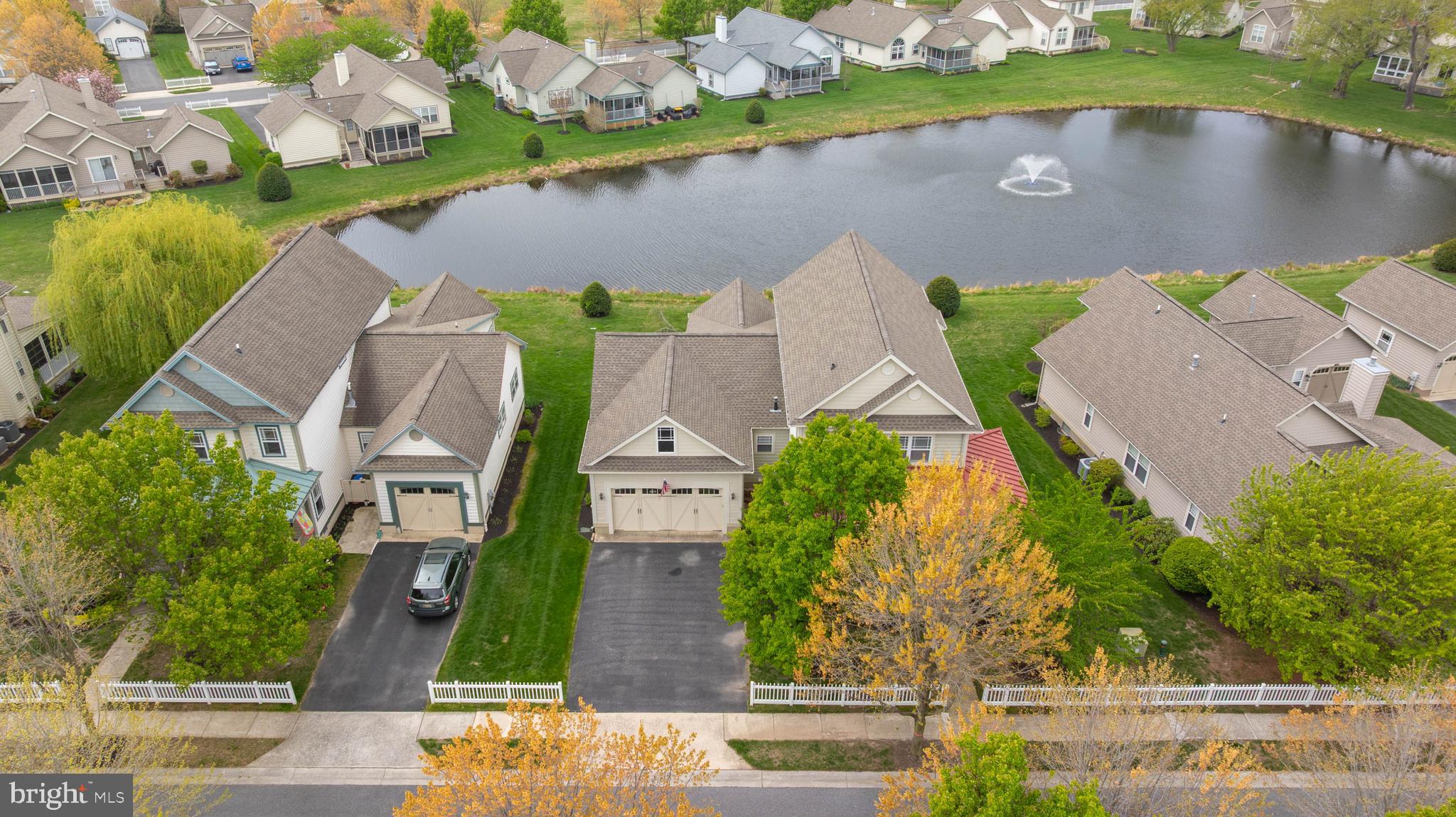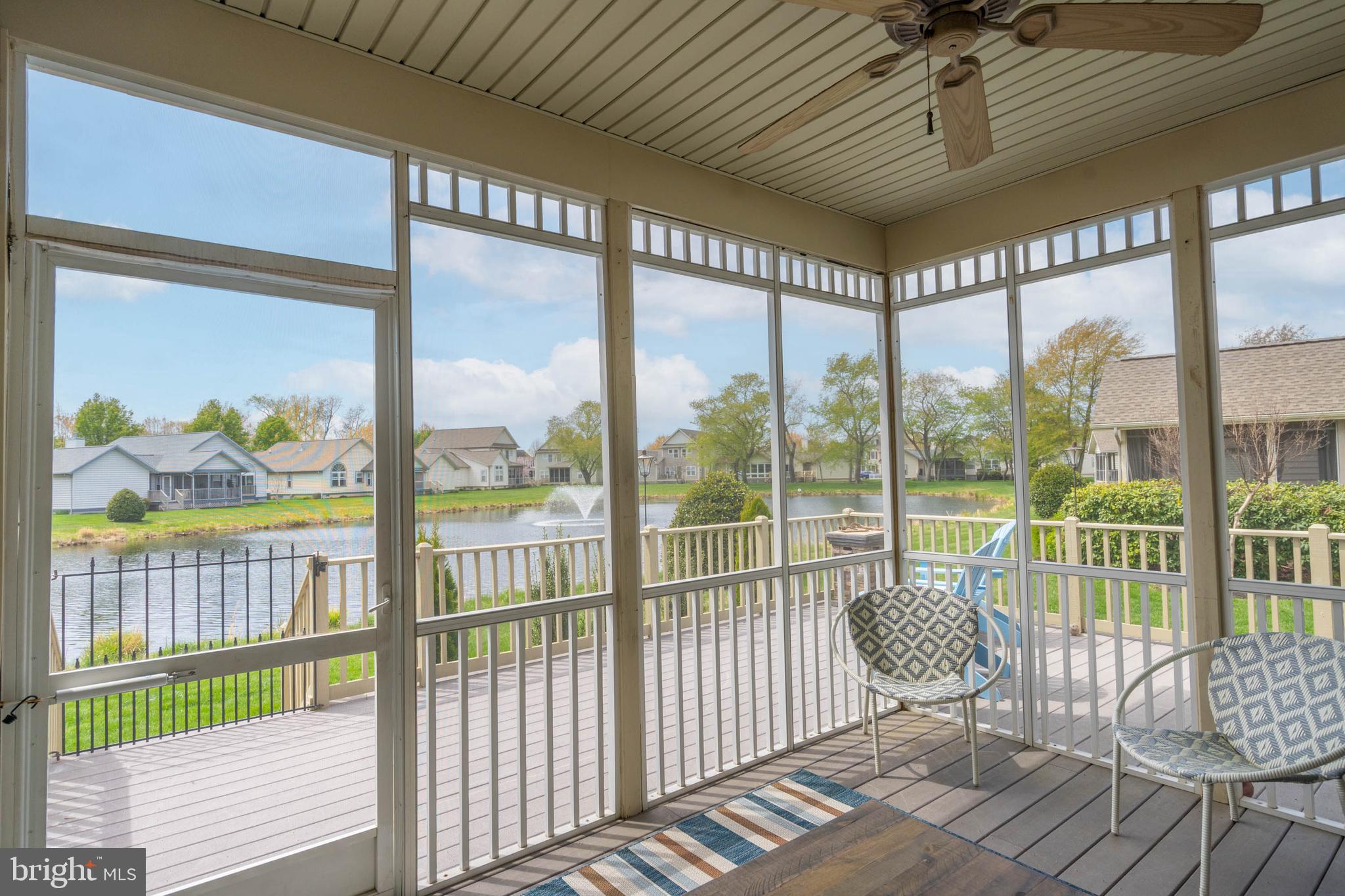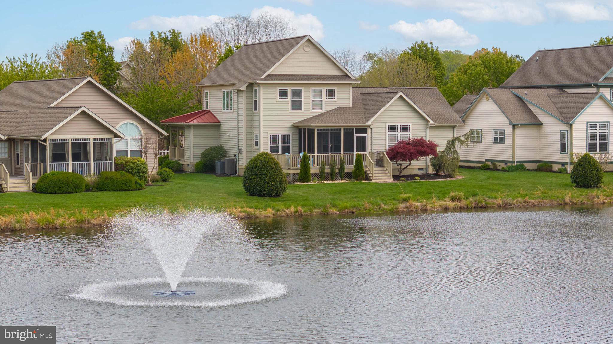 Welcome to Paynters Mill, one of Milton's most charming and picturesque communities, where white picket fences, sidewalks on both sides of tree-lined streets, and timeless curb appeal create a setting that feels straight out of Mayberry. Perfectly positioned on arguably one of the best homesites in the neighborhood, this incredible single-family home enjoys sweeping views of a large community pond, complete with a tranquil fountain backdrop. From the moment you arrive, you will be captivated by the expansive wrap-around front porch, offering the perfect place to relax, gather with family and friends, or simply enjoy the peaceful surroundings. Step inside and immediately appreciate the open and inviting layout. The front of the home features a welcoming vestibule entrance, powder room, and formal dining area that flows seamlessly into the beautifully appointed kitchen with white cabinetry, granite countertops, stainless steel appliances, and abundant workspace. The kitchen opens directly to the spacious great room, where a cozy gas fireplace and walls of windows frame stunning pond views and fill the home with natural light. Just beyond, enjoy outdoor living at its finest on the screened porch and oversized rear deck, where you can unwind while taking in the peaceful sights and sounds of the water and fountain. The private first-floor primary suite is tucked away in the rear corner of the home and offers two walk-in closets along with a luxurious ensuite bath featuring a double vanity, jetted soaking tub, and separate walk-in shower. Upstairs, the home continues to impress with a spacious loft area, two guest bedrooms, a full guest bath, and an additional private suite complete with a walk-in closet and an ensuite bath with a walk-in shower, perfect for guests or multigenerational living. Additional highlights include a spacious two-car garage and a generously sized driveway. Residents of Paynters Mill enjoy exceptional amenities, including a clubhouse with a fitness room, meeting space, outdoor pool, tot lot, beach volleyball, and new pickleball courts, tennis court, bocce ball, and a basketball court. This home epitomizes easy living as the condo association dues cover everything from the walls out, which means you can spend more time living and less time maintaining your home! The home is ideally located just a short drive to Historic Lewes and the beaches, boardwalk, dining, and shopping of Rehoboth Beach, this home offers the perfect blend of small-town charm and coastal convenience.