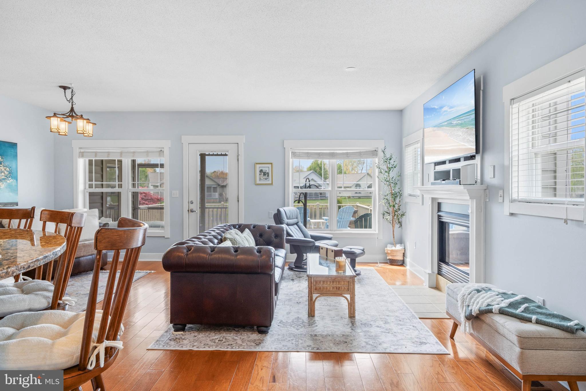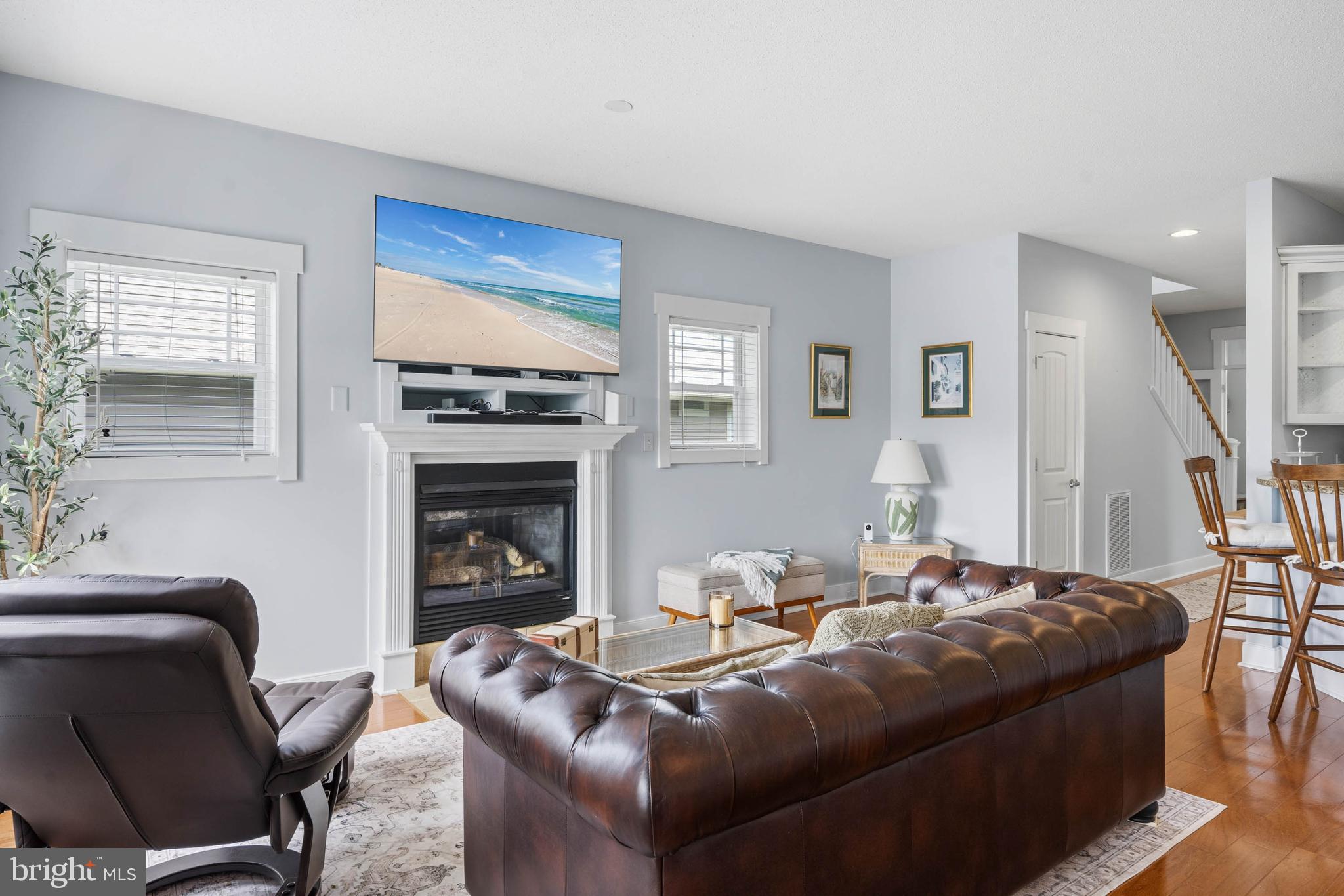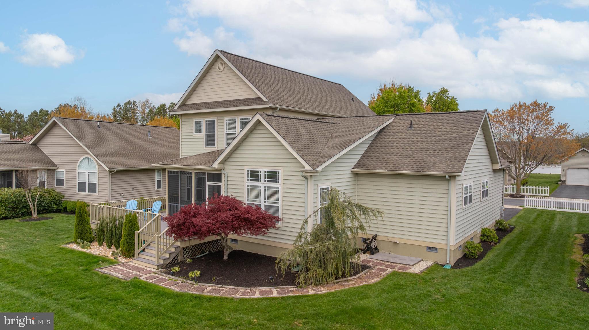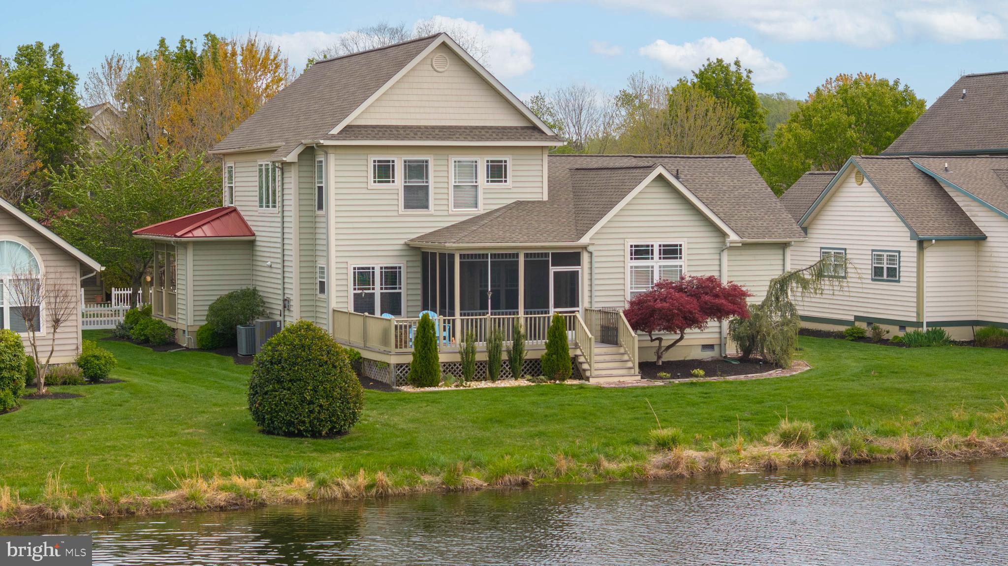 Welcome to Paynters Mill, one of Milton's most charming and picturesque communities, where white picket fences, sidewalks on both sides of tree-lined streets, and timeless curb appeal create a setting that feels straight out of Mayberry. Perfectly positioned on arguably one of the best homesites in the neighborhood, this incredible single-family home enjoys sweeping views of a large community pond, complete with a tranquil fountain backdrop. From the moment you arrive, you will be captivated by the expansive wrap-around front porch, offering the perfect place to relax, gather with family and friends, or simply enjoy the peaceful surroundings. Step inside and immediately appreciate the open and inviting layout. The front of the home features a welcoming vestibule entrance, powder room, and formal dining area that flows seamlessly into the beautifully appointed kitchen with white cabinetry, granite countertops, stainless steel appliances, and abundant workspace. The kitchen opens directly to the spacious great room, where a cozy gas fireplace and walls of windows frame stunning pond views and fill the home with natural light. Just beyond, enjoy outdoor living at its finest on the screened porch and oversized rear deck, where you can unwind while taking in the peaceful sights and sounds of the water and fountain. The private first-floor primary suite is tucked away in the rear corner of the home and offers two walk-in closets along with a luxurious ensuite bath featuring a double vanity, jetted soaking tub, and separate walk-in shower. Upstairs, the home continues to impress with a spacious loft area, two guest bedrooms, a full guest bath, and an additional private suite complete with a walk-in closet and an ensuite bath with a walk-in shower, perfect for guests or multigenerational living. Additional highlights include a spacious two-car garage and a generously sized driveway. Residents of Paynters Mill enjoy exceptional amenities, including a clubhouse with a fitness room, meeting space, outdoor pool, tot lot, beach volleyball, and new pickleball courts, tennis court, bocce ball, and a basketball court. This home epitomizes easy living as the condo association dues cover everything from the walls out, which means you can spend more time living and less time maintaining your home! The home is ideally located just a short drive to Historic Lewes and the beaches, boardwalk, dining, and shopping of Rehoboth Beach, this home offers the perfect blend of small-town charm and coastal convenience.
