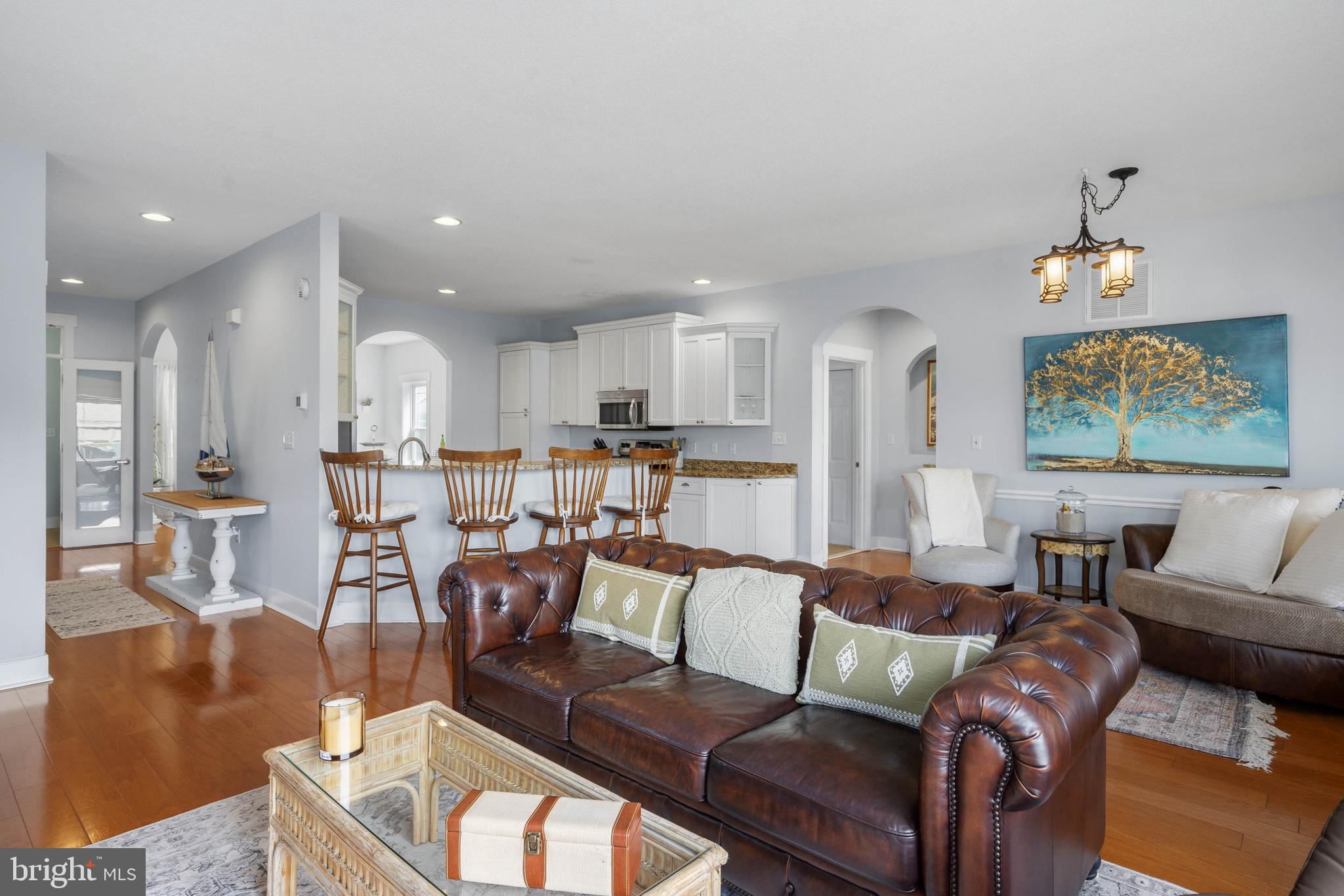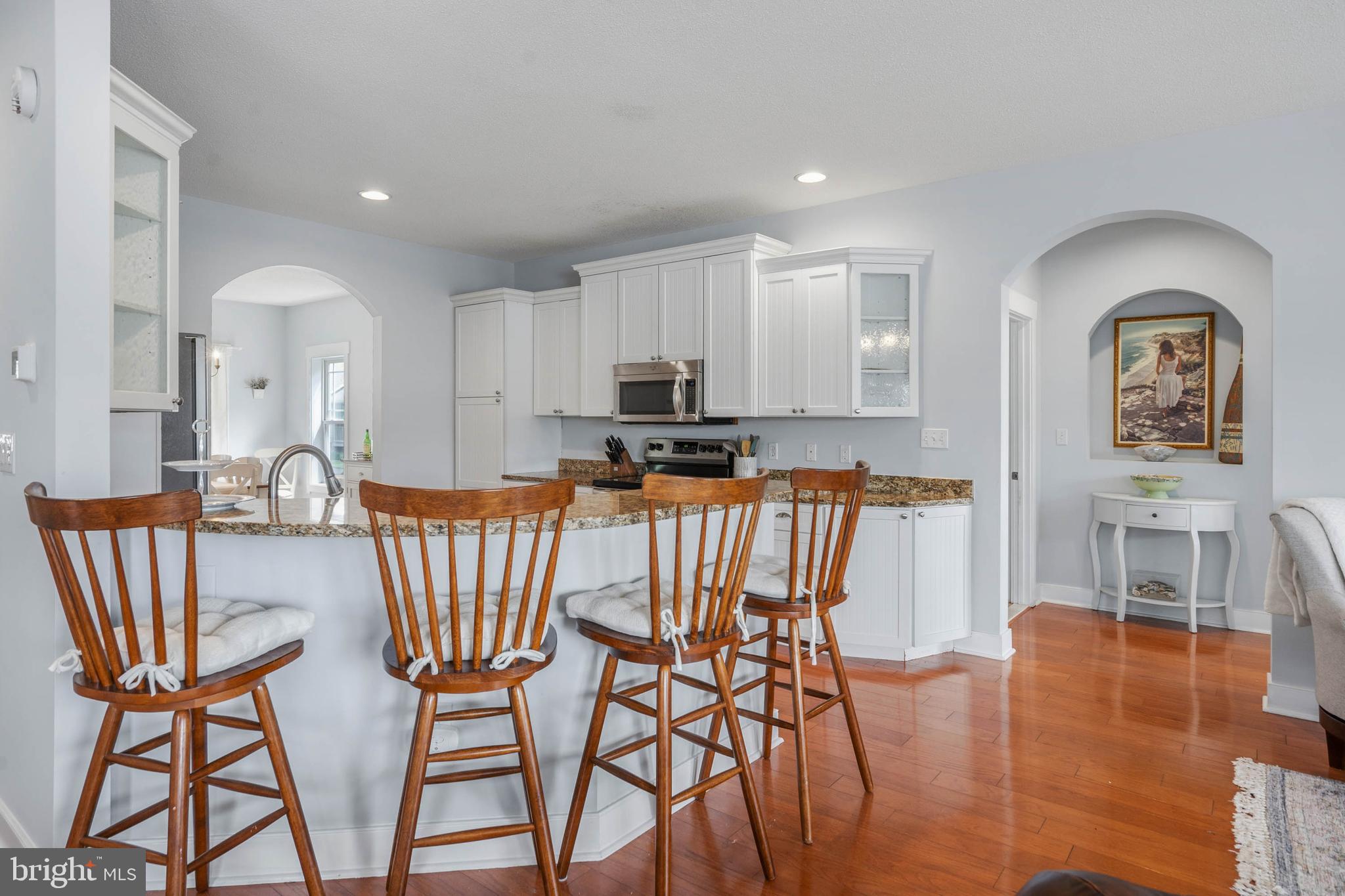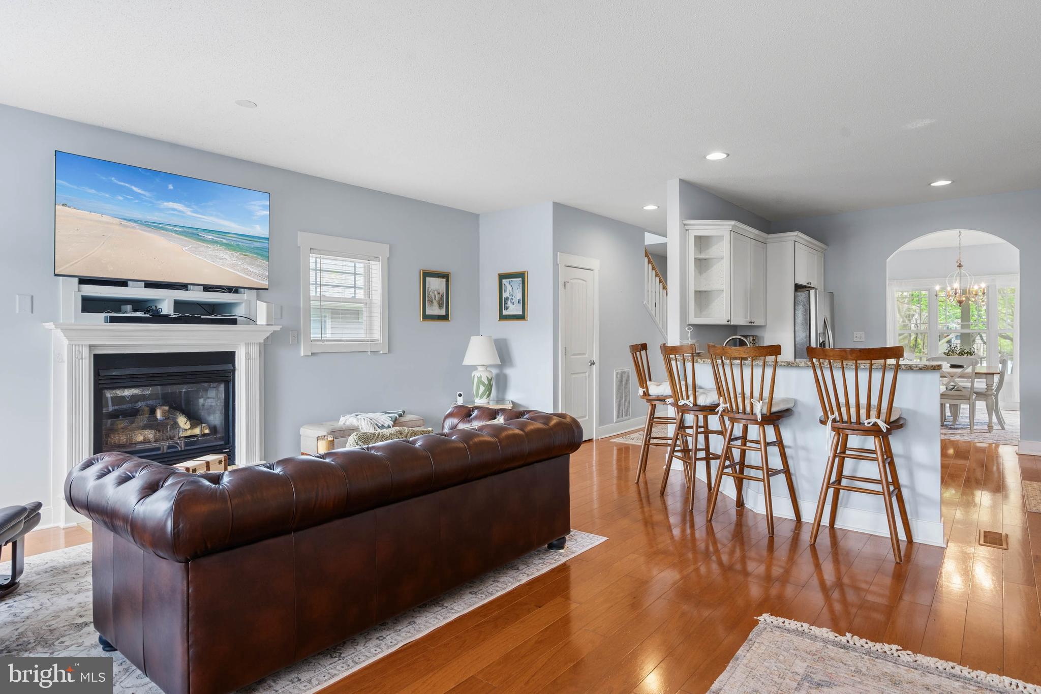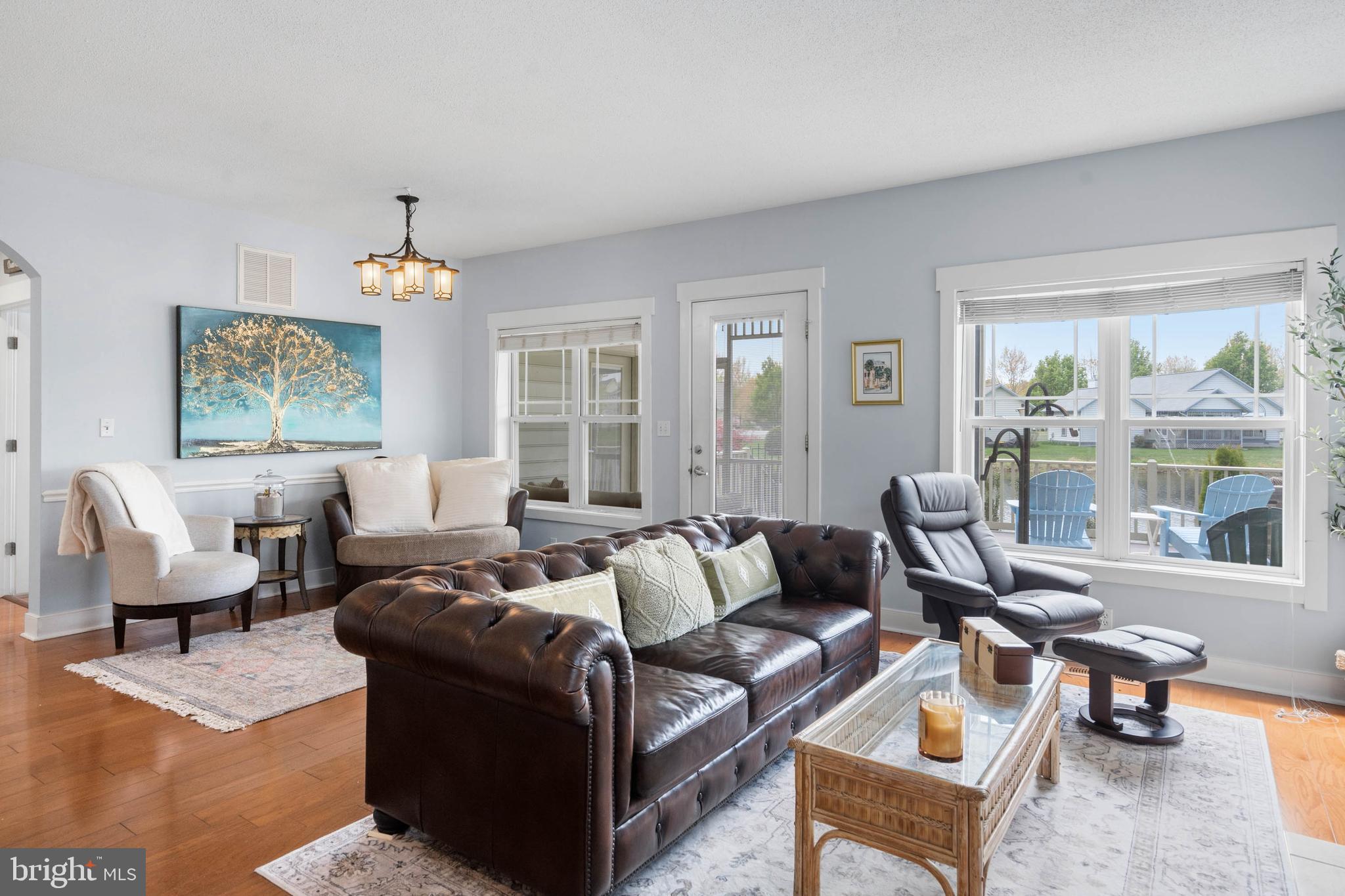 Welcome to Paynters Mill, one of Milton's most charming and picturesque communities, where white picket fences, sidewalks on both sides of tree-lined streets, and timeless curb appeal create a setting that feels straight out of Mayberry. Perfectly positioned on arguably one of the best homesites in the neighborhood, this incredible single-family home enjoys sweeping views of a large community pond, complete with a tranquil fountain backdrop. From the moment you arrive, you will be captivated by the expansive wrap-around front porch, offering the perfect place to relax, gather with family and friends, or simply enjoy the peaceful surroundings. Step inside and immediately appreciate the open and inviting layout. The front of the home features a welcoming vestibule entrance, powder room, and formal dining area that flows seamlessly into the beautifully appointed kitchen with white cabinetry, granite countertops, stainless steel appliances, and abundant workspace. The kitchen opens directly to the spacious great room, where a cozy gas fireplace and walls of windows frame stunning pond views and fill the home with natural light. Just beyond, enjoy outdoor living at its finest on the screened porch and oversized rear deck, where you can unwind while taking in the peaceful sights and sounds of the water and fountain. The private first-floor primary suite is tucked away in the rear corner of the home and offers two walk-in closets along with a luxurious ensuite bath featuring a double vanity, jetted soaking tub, and separate walk-in shower. Upstairs, the home continues to impress with a spacious loft area, two guest bedrooms, a full guest bath, and an additional private suite complete with a walk-in closet and an ensuite bath with a walk-in shower, perfect for guests or multigenerational living. Additional highlights include a spacious two-car garage and a generously sized driveway. Residents of Paynters Mill enjoy exceptional amenities, including a clubhouse with a fitness room, meeting space, outdoor pool, tot lot, beach volleyball, and new pickleball courts, tennis court, bocce ball, and a basketball court. This home epitomizes easy living as the condo association dues cover everything from the walls out, which means you can spend more time living and less time maintaining your home! The home is ideally located just a short drive to Historic Lewes and the beaches, boardwalk, dining, and shopping of Rehoboth Beach, this home offers the perfect blend of small-town charm and coastal convenience.