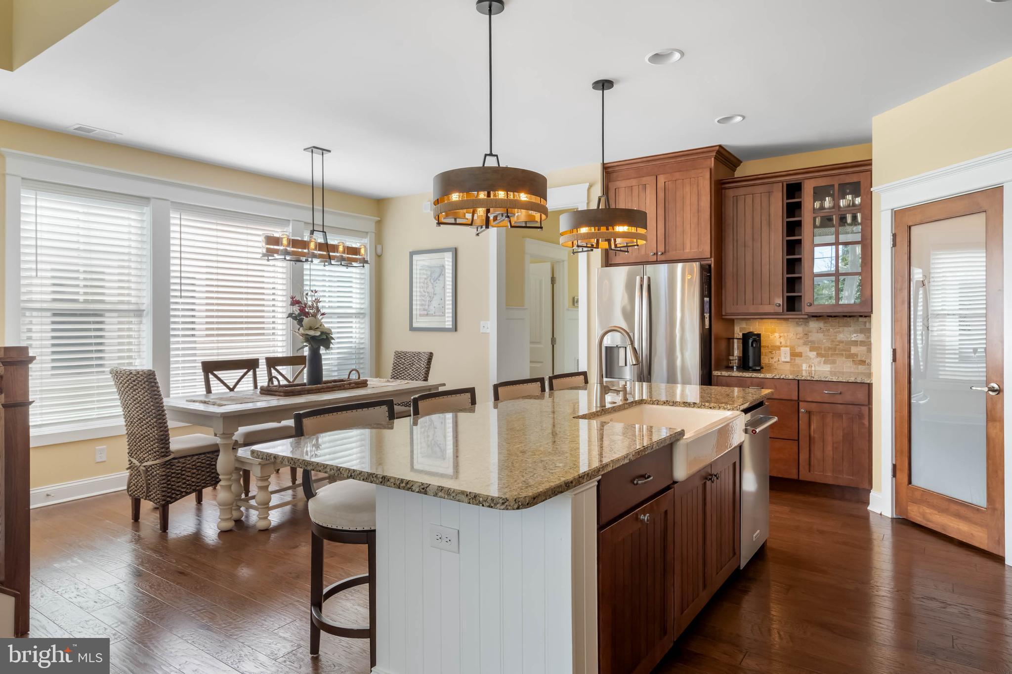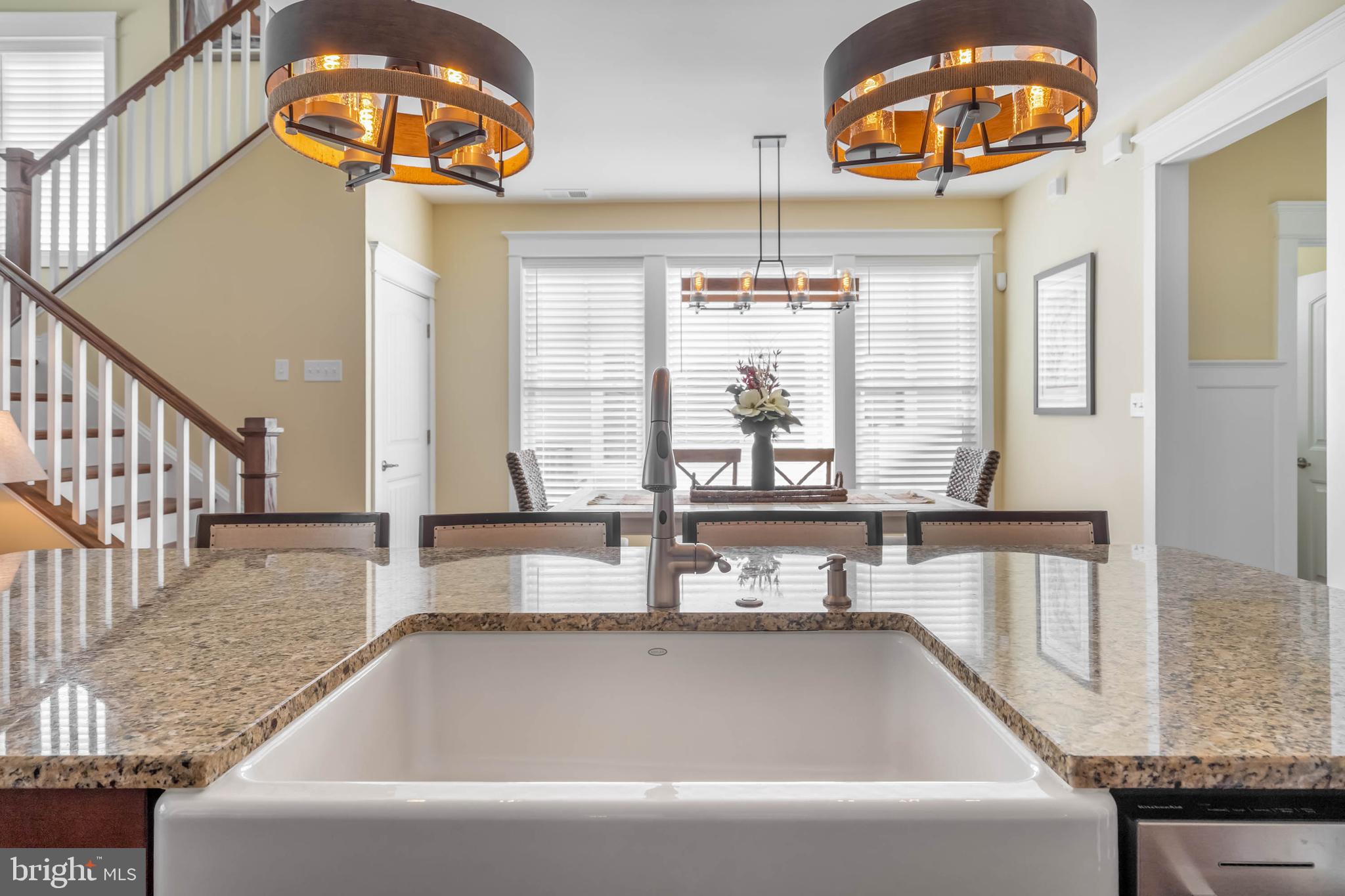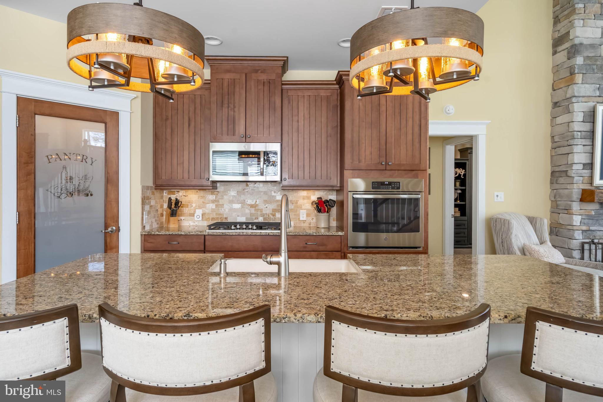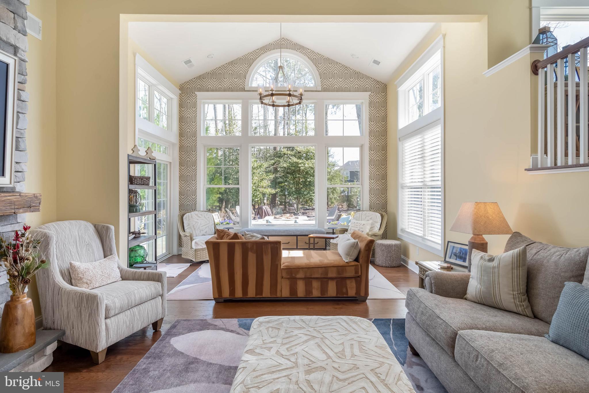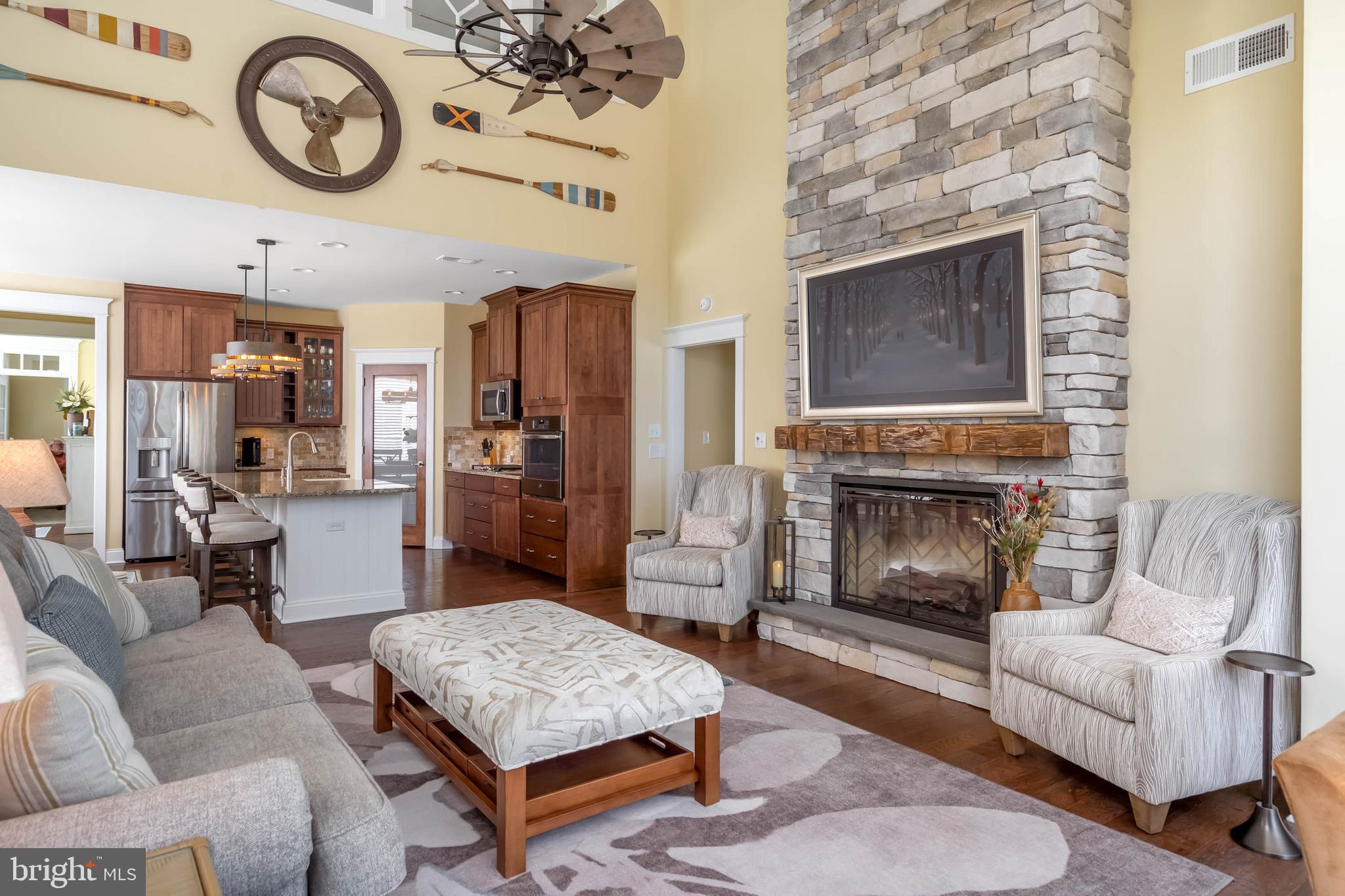 From the moment you arrive, the charming covered front porch and second-floor porch set the tone for the exceptional design found throughout. Inside, the first floor showcases hand-scraped, wide-plank hickory engineered hardwood flooring and a thoughtfully designed layout, including a private study, convenient laundry room, and powder room. The heart of the home is the stunning gourmet kitchen, featuring full-overlay cabinetry with elegant shutter detailing, granite countertops, a farmhouse sink, stainless steel appliances, a cooktop, wall oven, exterior-vented microwave, and French door refrigerator. The kitchen flows seamlessly into the light-filled dining area and the dramatic great room, highlighted by a vaulted ceiling and a striking floor-to-ceiling stone fireplace.