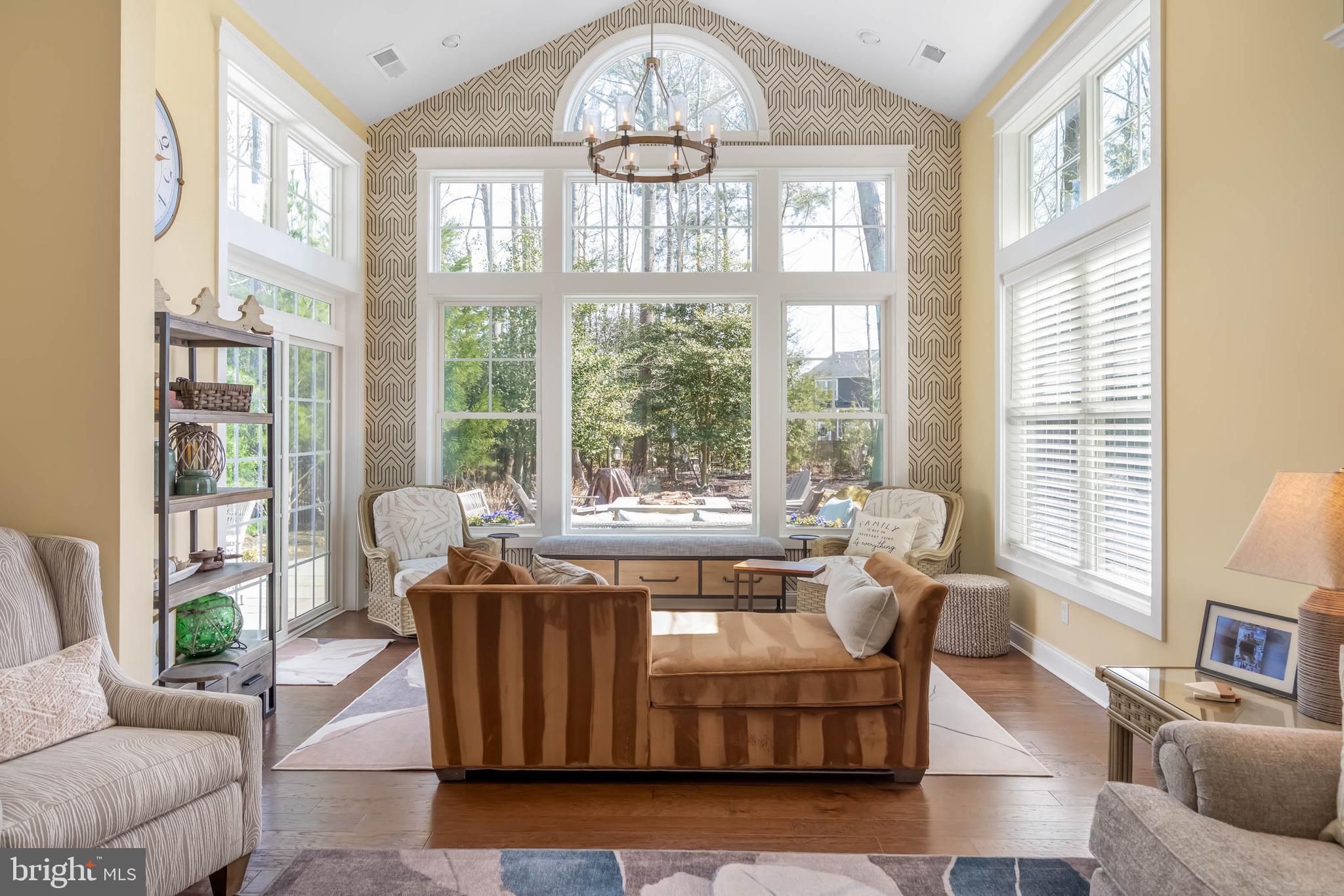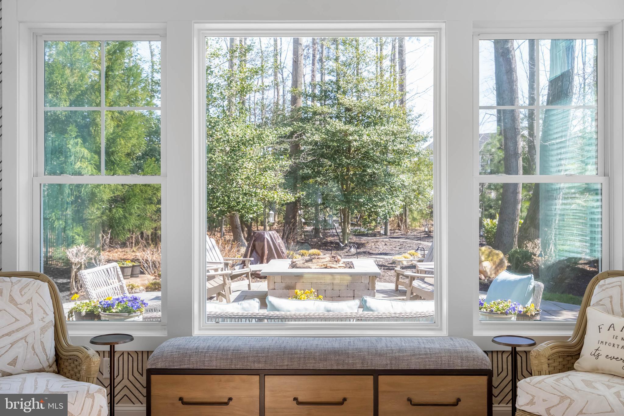 The rear sunroom offers peaceful views of the custom outdoor living space, where a beautifully designed patio with a gas firepit, multiple seating areas, and complete wooded privacy creates the ultimate outdoor retreat. A separate deck nestled within the trees adds yet another layer of charm, providing a magical setting for evening gatherings under the lights.