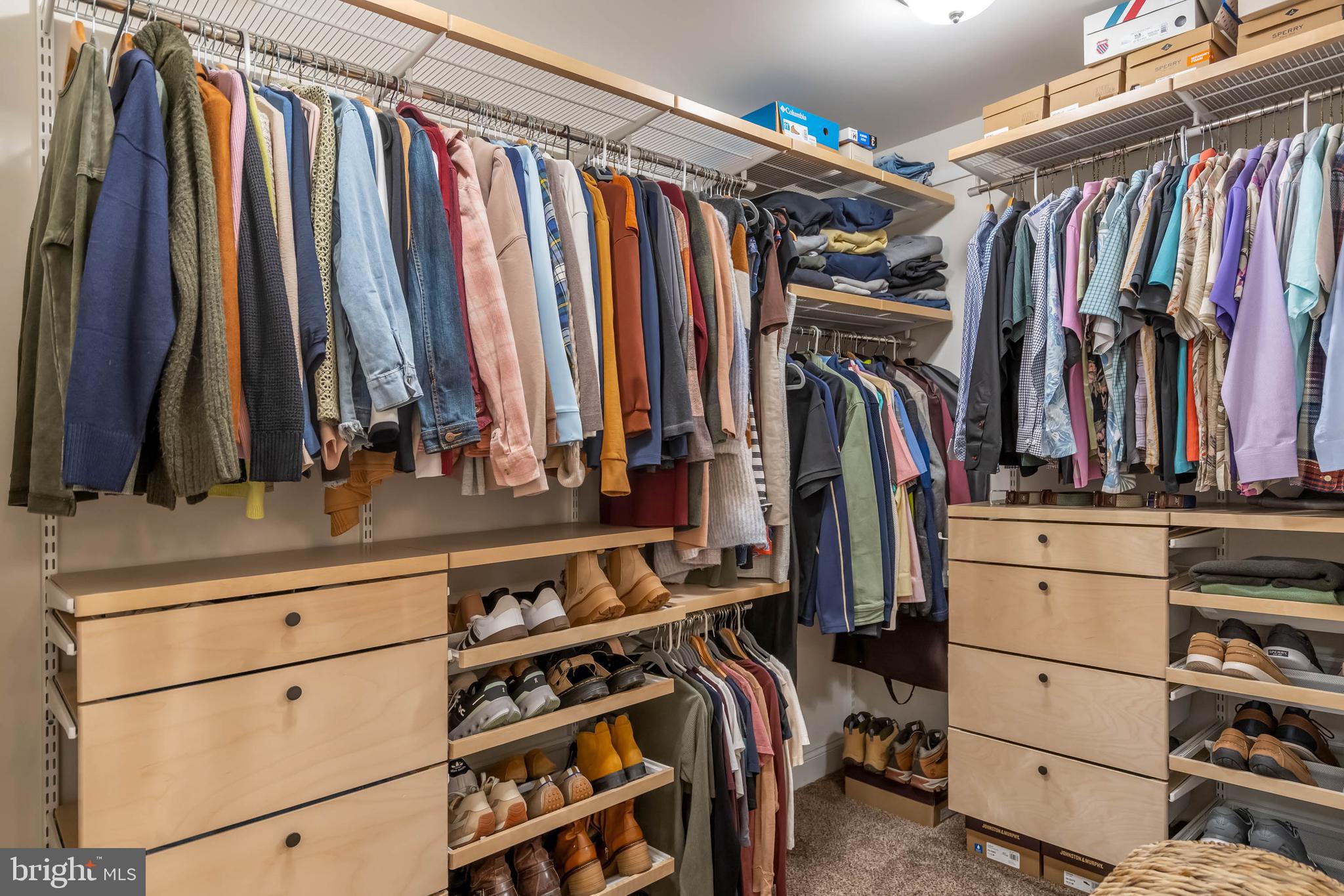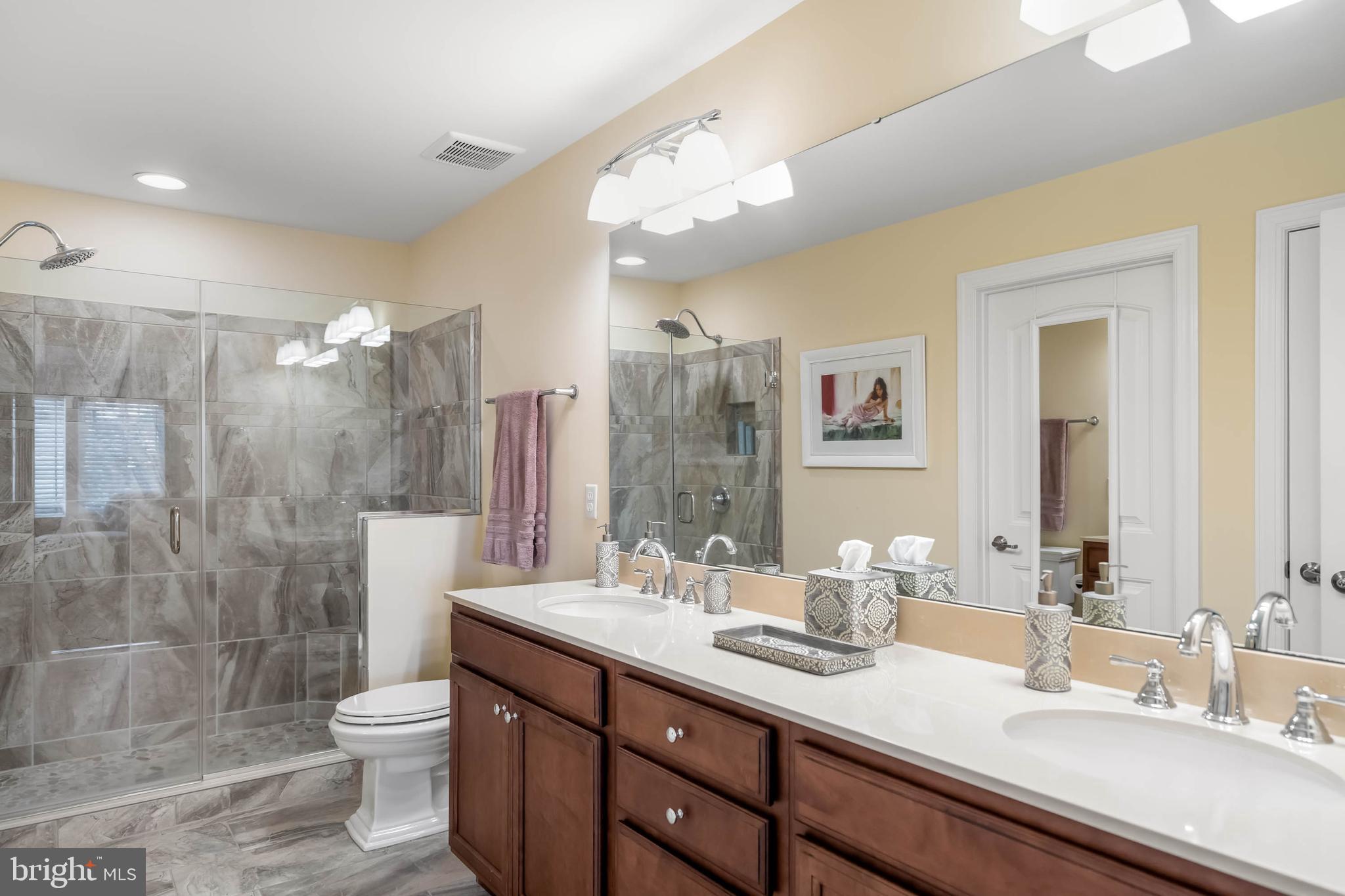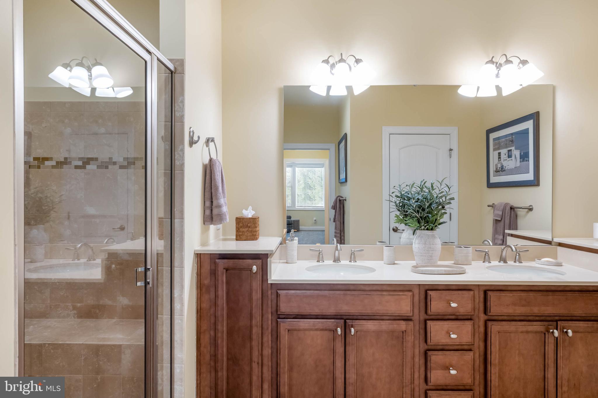 The first-floor primary suite is a true sanctuary, complete with two walk-in closets and a luxurious en suite bath featuring a double vanity, large walk-in shower, and private water closet. Upstairs, the versatility continues with a second primary suite offering its own spa-like bath and expansive custom closet--perfect for guests or multi-generational living. A spacious loft with a custom glass feature wall provides separation and style, while two additional guest bedrooms, a full bath, and an unfinished bonus room offer endless possibilities for storage or future expansion. Custom trim work, designer paint selections, and upgraded window treatments are showcased throughout the home.