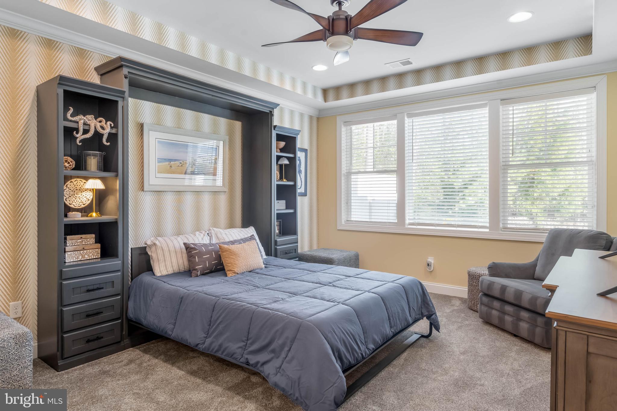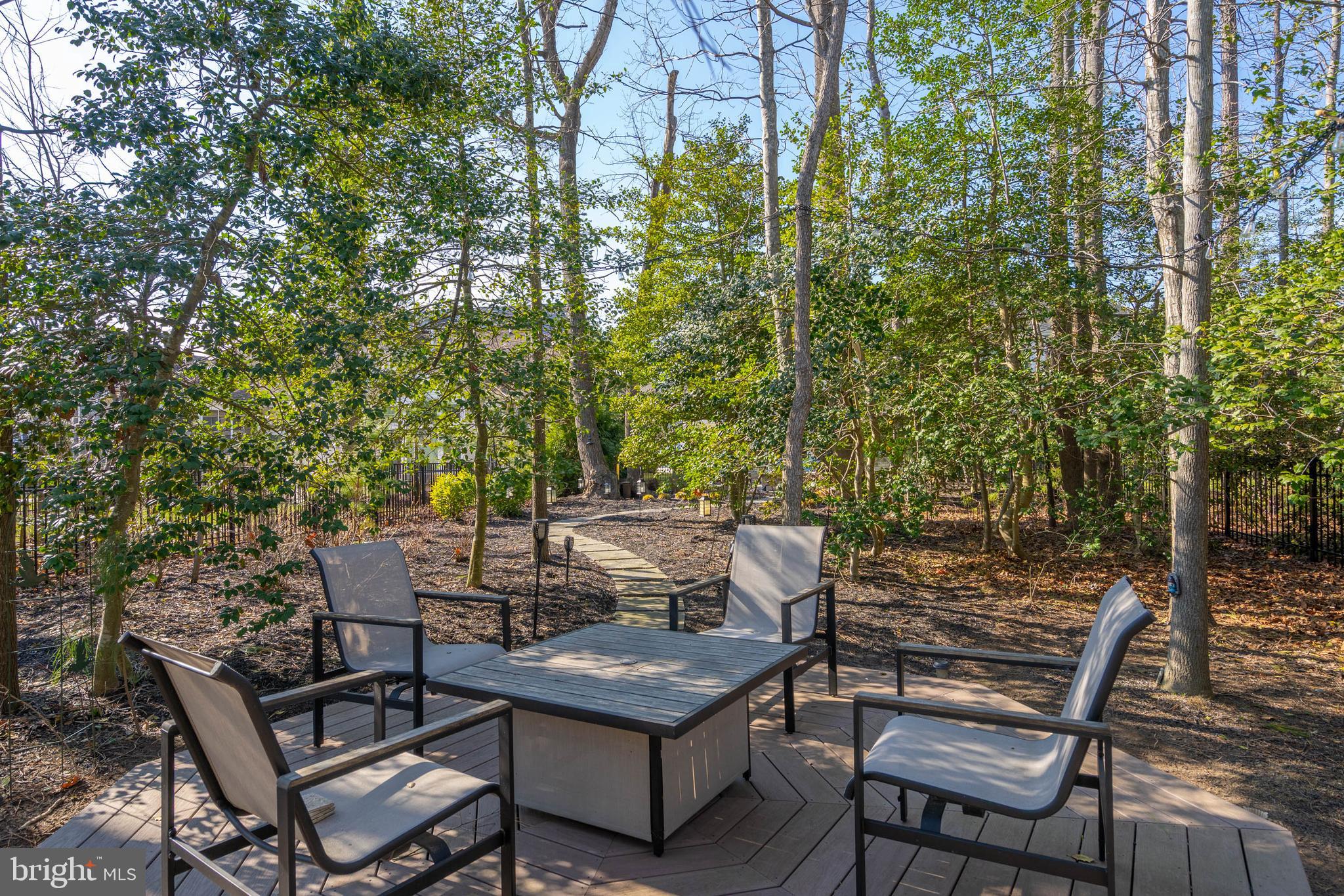 Welcome to Coastal Club living at its absolute finest! This impeccably maintained twin home, built by Schell Brothers and featuring the highly sought-after Hatteras floor plan, is perfectly positioned on what is arguably one of the most desirable homesites in the entire community. The depth of the lot is truly impressive, offering a rare, fully wooded backdrop that creates a private oasis, complete with a custom clearing tucked into the woods, beautifully enhanced with hanging party lights for unforgettable evenings with friends and family.