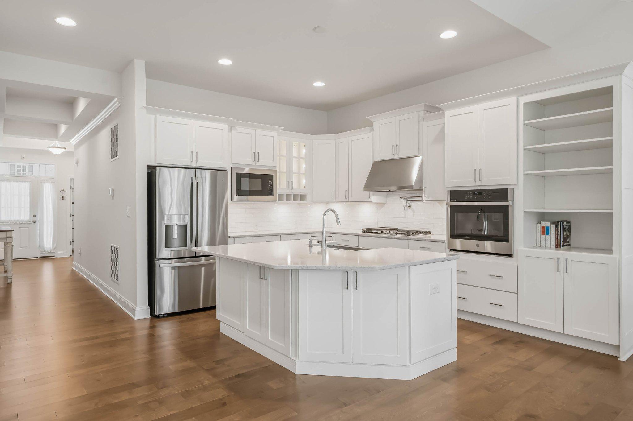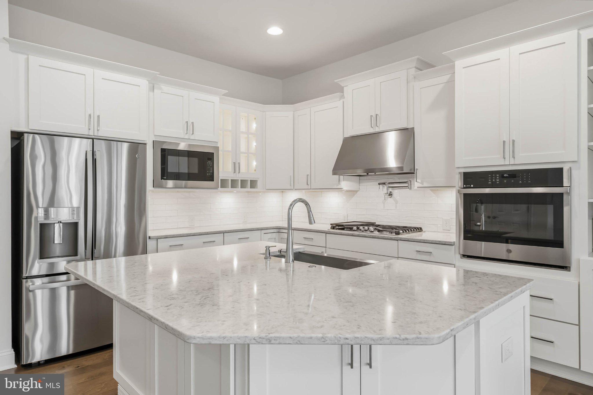As you move into the heart of the home, you'll be captivated by the bright and open great room that seamlessly connects to the dining area and a light-filled sunroom, creating the perfect space for both everyday living and entertaining. The gourmet kitchen with quartz countertops is truly a showstopper, featuring stainless steel appliances, a 36" natural gas cooktop, hood vent, wall oven, dishwasher, and French door refrigerator, designed to impress even the most discerning home chef. Step outside from the sunroom onto the private deck and unwind while enjoying peaceful wooded views, offering the perfect backdrop for morning coffee or evening relaxation.
