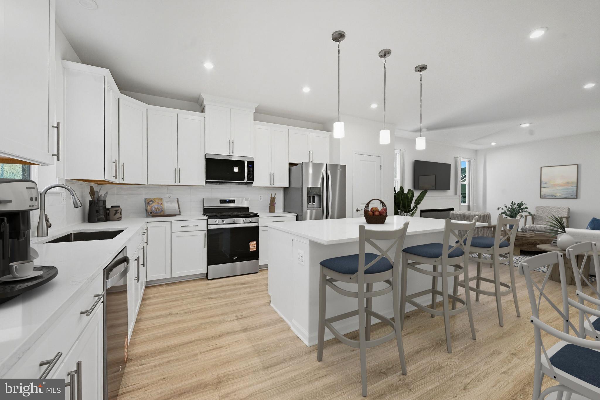 Open Concept Living: The open-concept floor plan seamlessly connects the kitchen, dining, and living areas, creating a spacious environment for family and friends.