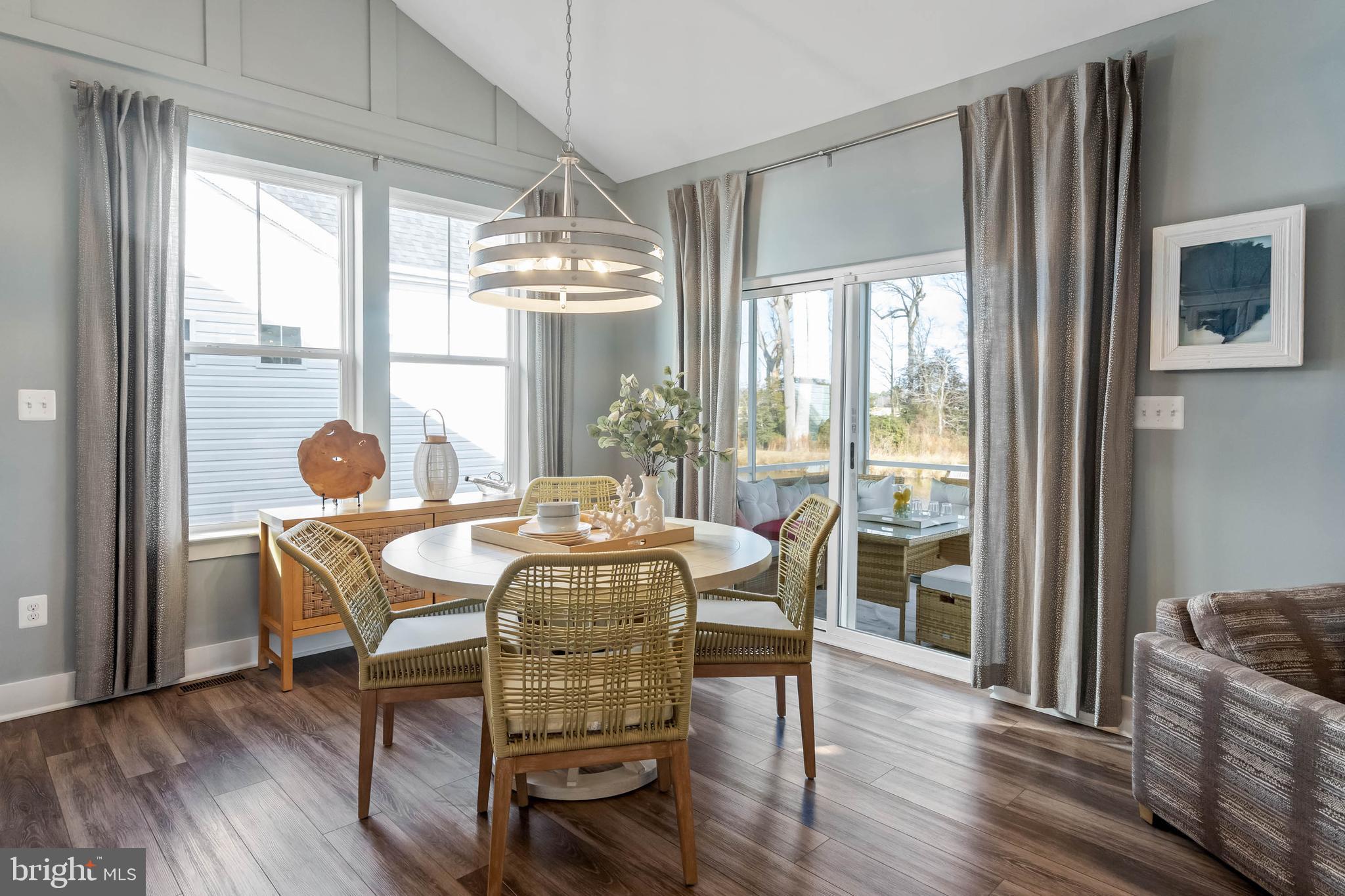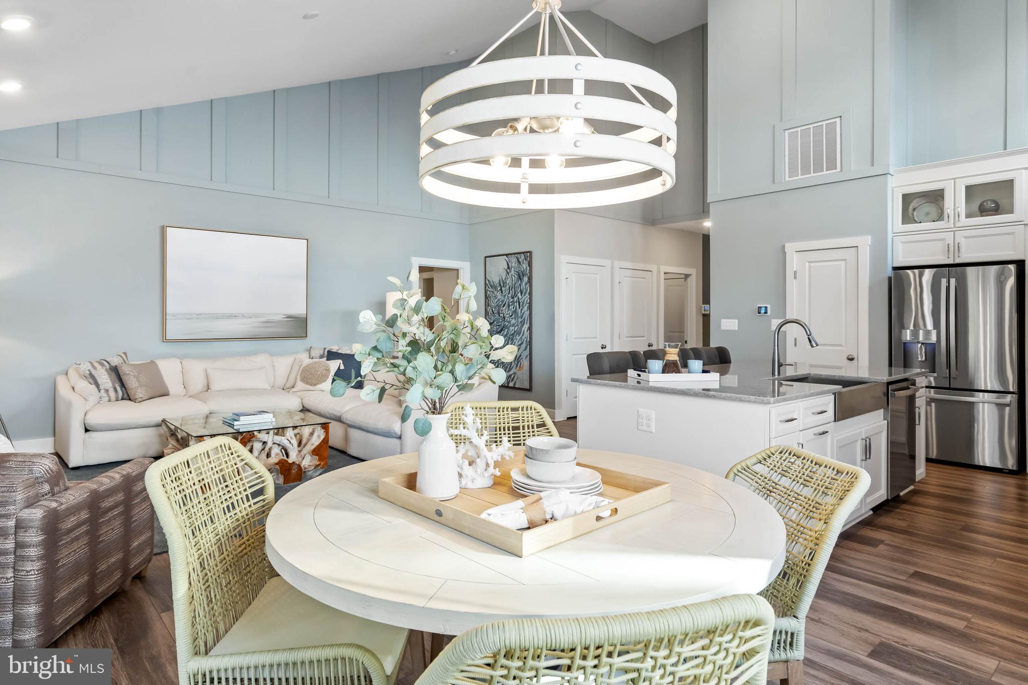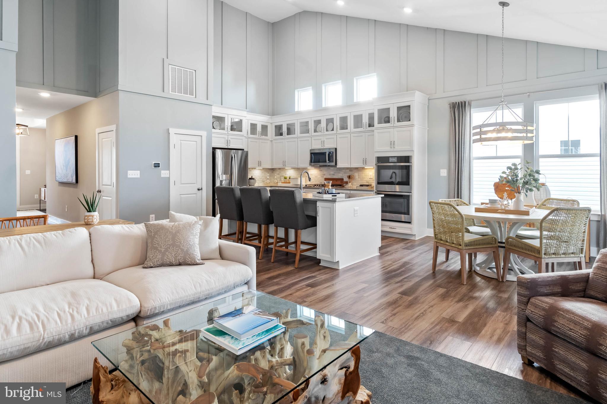 Welcome to Chase Oaks in Lewes, Delaware, where this exceptional home, currently serving as the DRB model, offers a rare opportunity to own a never-lived-in, professionally designed coastal ranch that will be fully converted by the end of March. Showcasing the highly sought-after Latitude floor plan, this home is thoughtfully decorated with custom paint & moldings as well as upscale window treatments throughout. The inviting layout features two guest bedrooms and a guest bath at the front of the home, while the private primary suite is tucked away in the rear corner, creating ideal separation for owners and guests. A stunning vaulted ceiling elevates the great room, kitchen, and dining areas, giving the home an open, airy, and grand feel, while the two-sided gas fireplace adds a touch of luxury and can be enjoyed from both the great room and the screened porch.