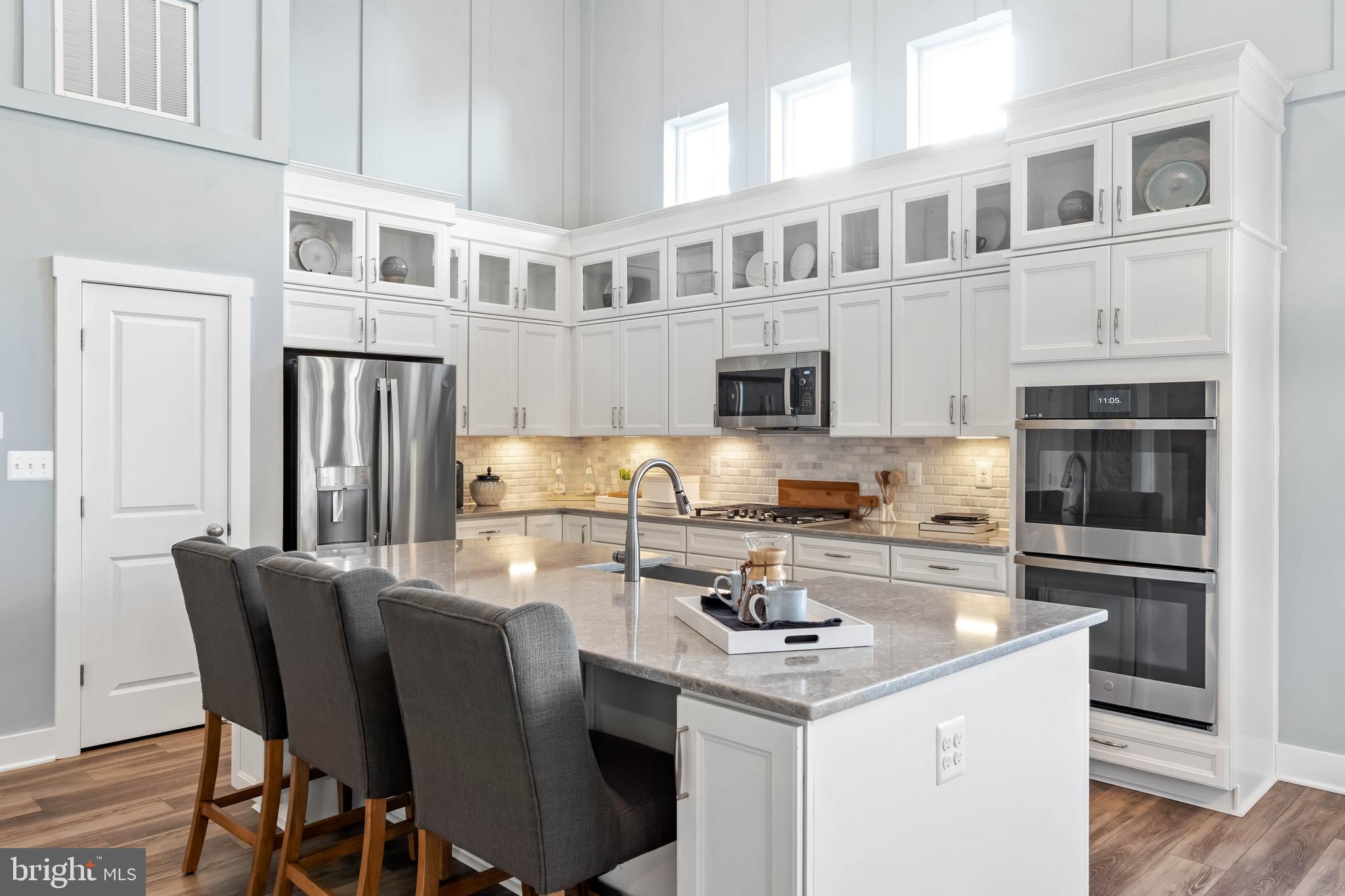 At the heart of the home is a true gourmet kitchen, equipped with a stainless steel applianced including anatural gas cooktop, double wall ovens, a French door refrigerator, dishwasher, and microwave, and even a washer and dryer. Step through the dining room sliding glass doors to the screened porch, which is perfect for outdoor relaxation and entertaining, and continue outside to the paver patio, an ideal space for grilling or gathering around a firepit. The homesite offers peaceful pond views with a wooded backdrop, adding to the home's serene coastal feel. This move-in-ready, never-occupied home could be yours just in time to enjoy the upcoming summer season in coastal Delaware. The primary suite features a double vanity, a large walk-in closet, and a spacious walk-in shower with a tiled seat.