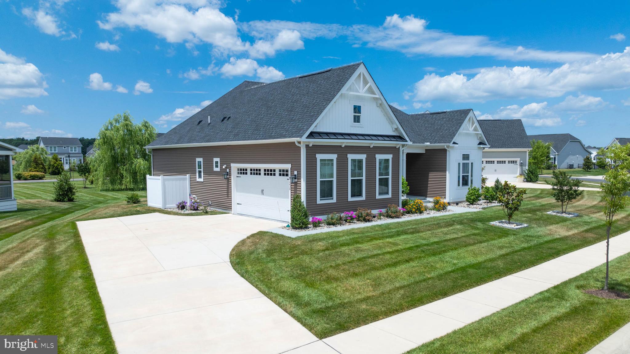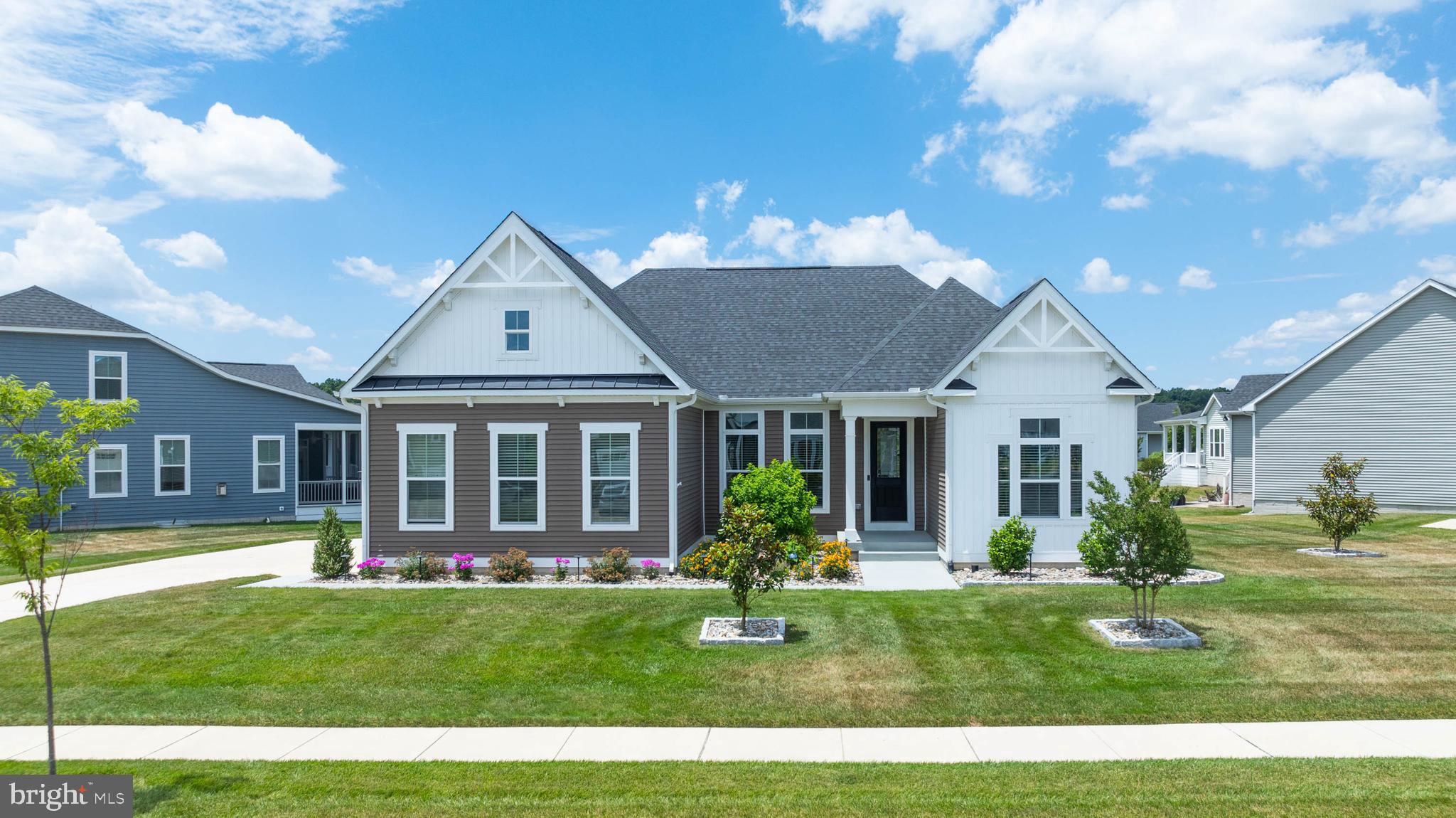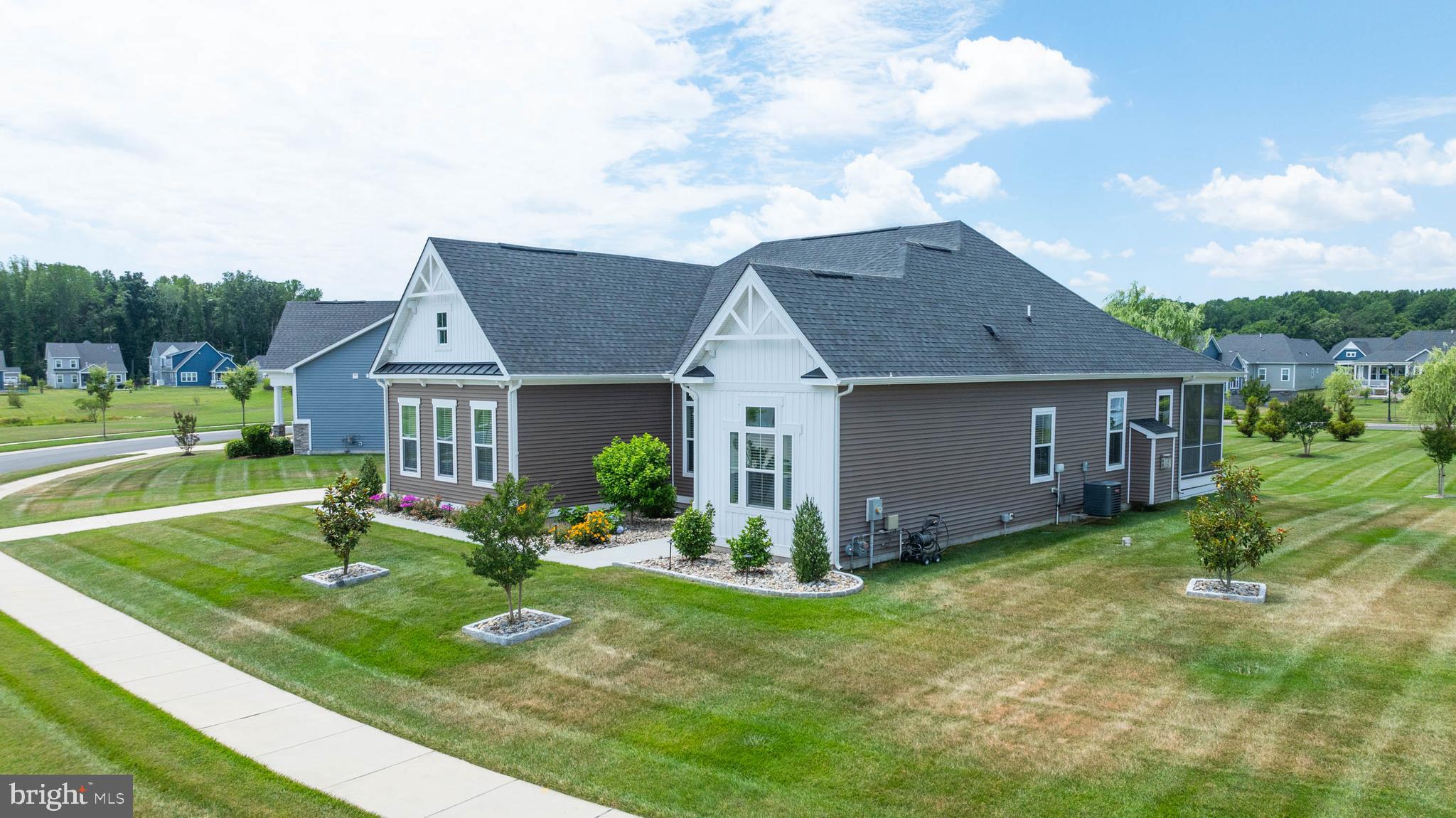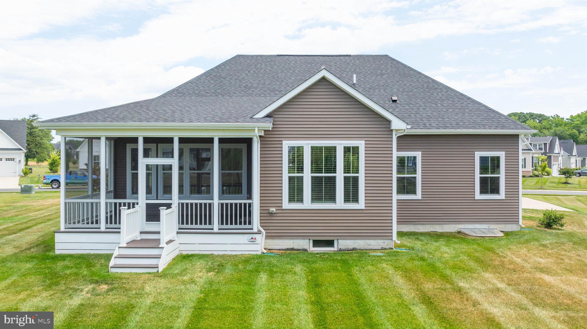 Welcome to your dream home at Marsh Farm Estates! This stunning NVHomes Seabrook floor plan offers 3 bedrooms and 3 bathrooms, with a side-entry garage. As you enter, you're greeted by a spacious study with elegant French doors, perfect for a home office or library. Two guest bedrooms and a full guest bathroom are located near the front of the home. Further in, you'll discover a light-filled great room seamlessly connected to the gourmet kitchen and dining room. The kitchen boasts a wall oven, built-in Advantium convection oven/microwave, gas cooktop, dishwasher, stainless steel appliances, and granite countertops, and a beautiful subway tile backsplash. The expansive kitchen island is ideal for entertaining. From the dining room, step out onto the screened porch to enjoy bug-free evenings with family and friends. The primary suite is tucked away from the guest bedrooms, featuring a luxurious ensuite bathroom with a large walk-in shower, double vanities, a separate water closet, and a linen closet. The drop zone and laundry room are conveniently located near the garage entry. The finished basement is an added bonus, offering an expansive recreation room, a full bathroom, two unfinished storage areas, and an egress window. This home stands out with its private irrigation well, beautiful landscaping, and decorative details. The community HOA dues cover lawn mowing and edging, a community pool and clubhouse, walking trails, and snow removal of the streets. Located just 8 miles from the Rehoboth Beach Boardwalk and 9 miles from Lewes Beach, you're perfectly positioned to enjoy beach days or a leisurely afternoon at the community pool. Don't miss the chance to make this beautiful home yours!