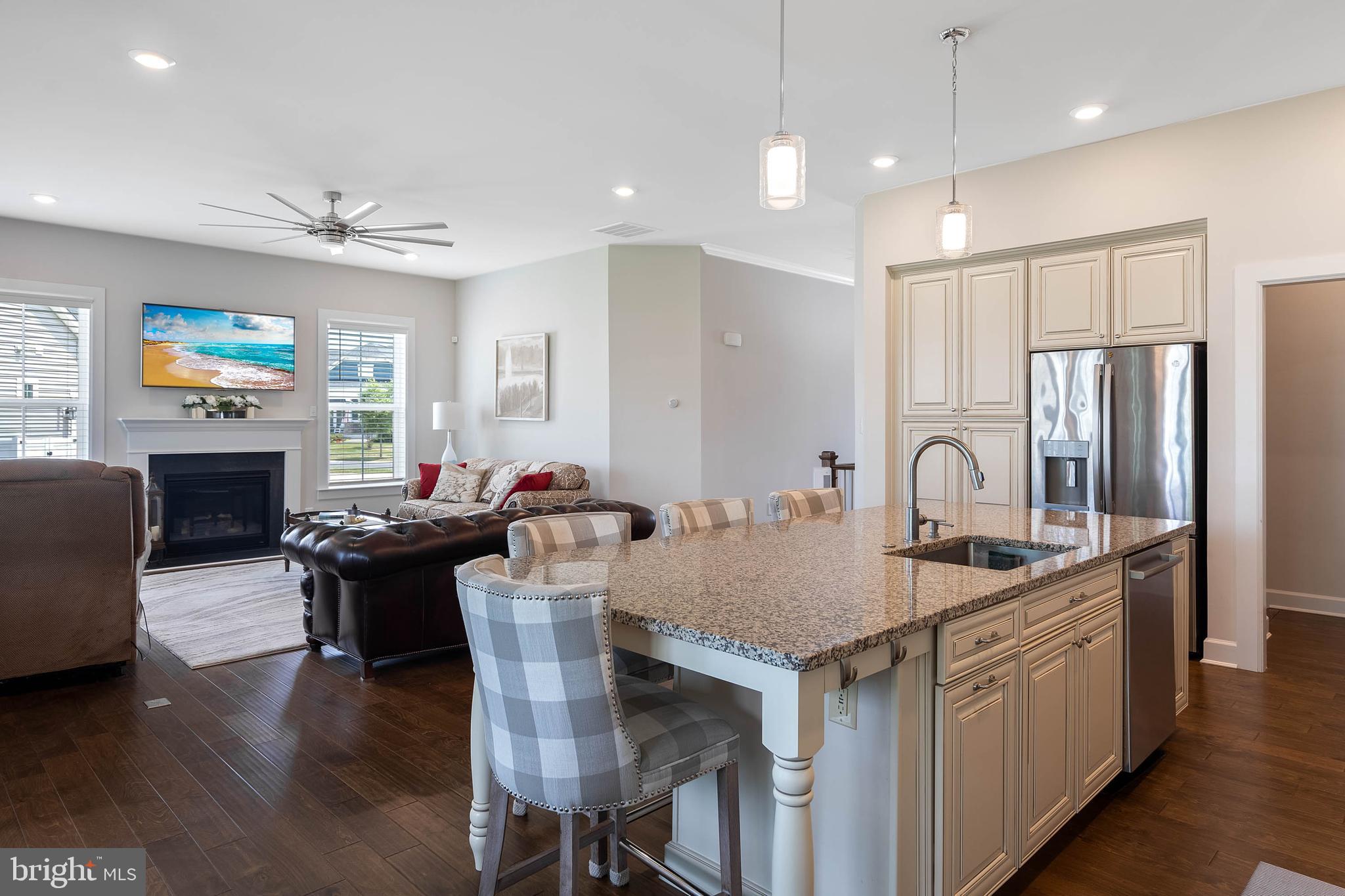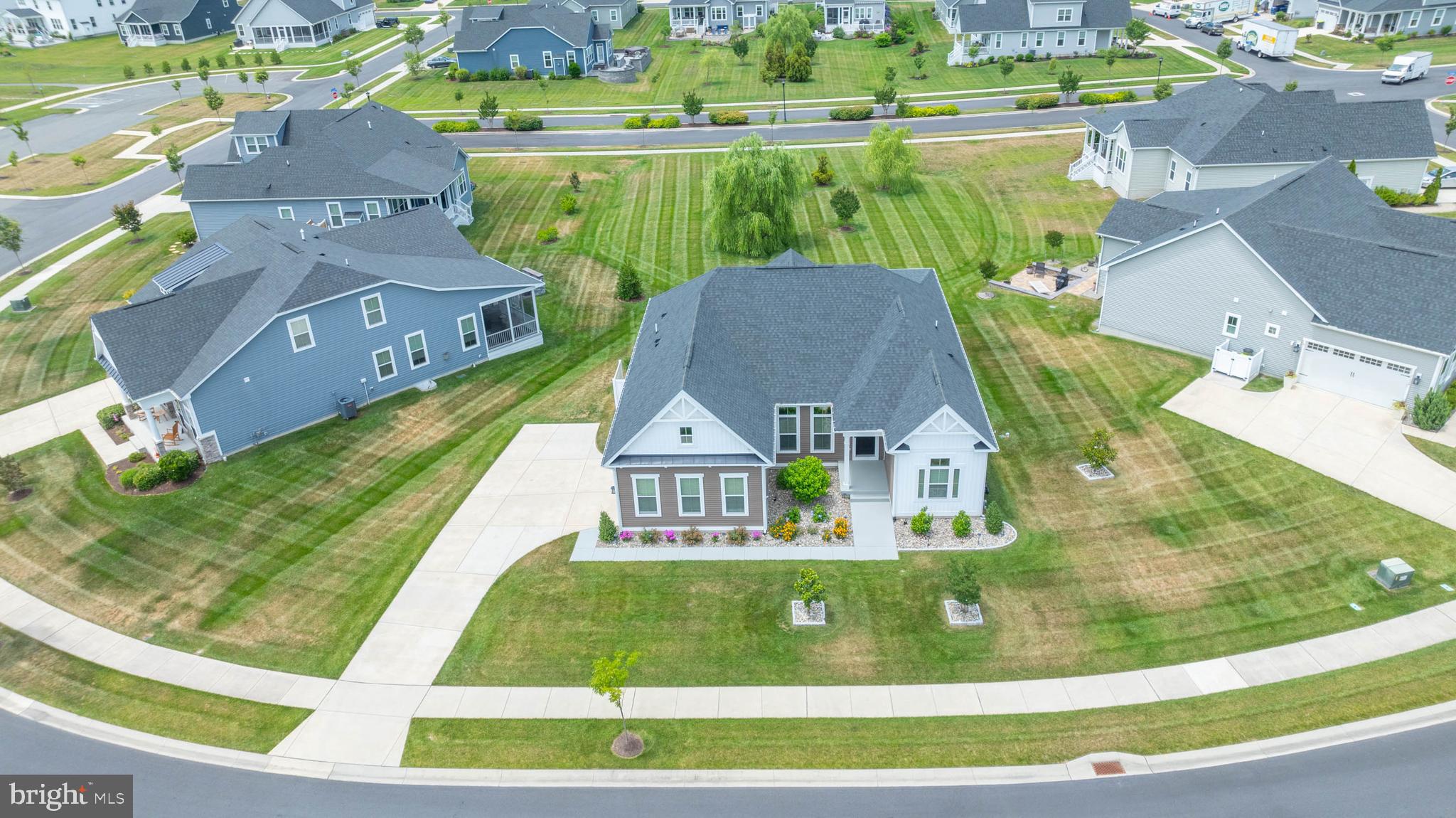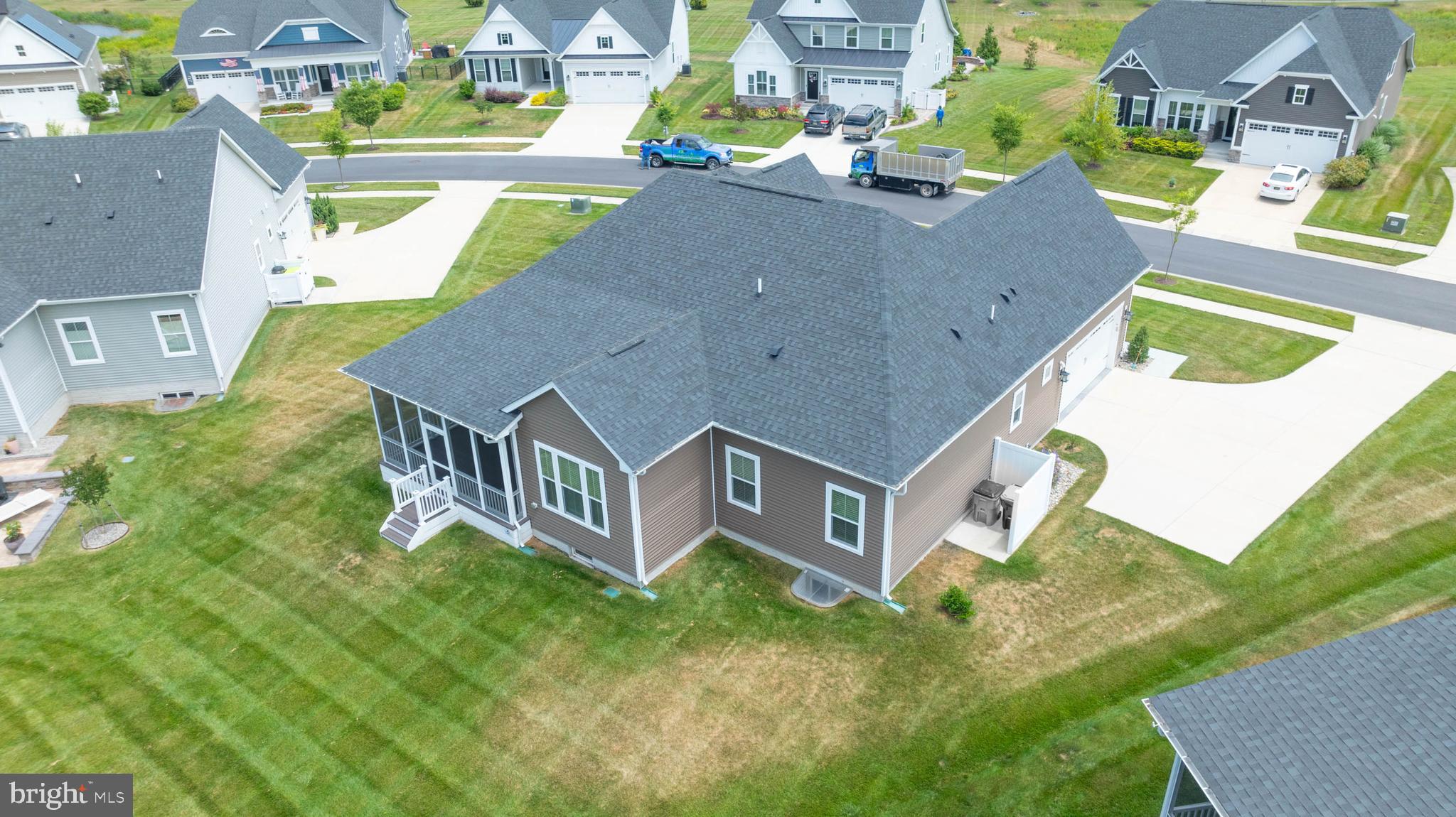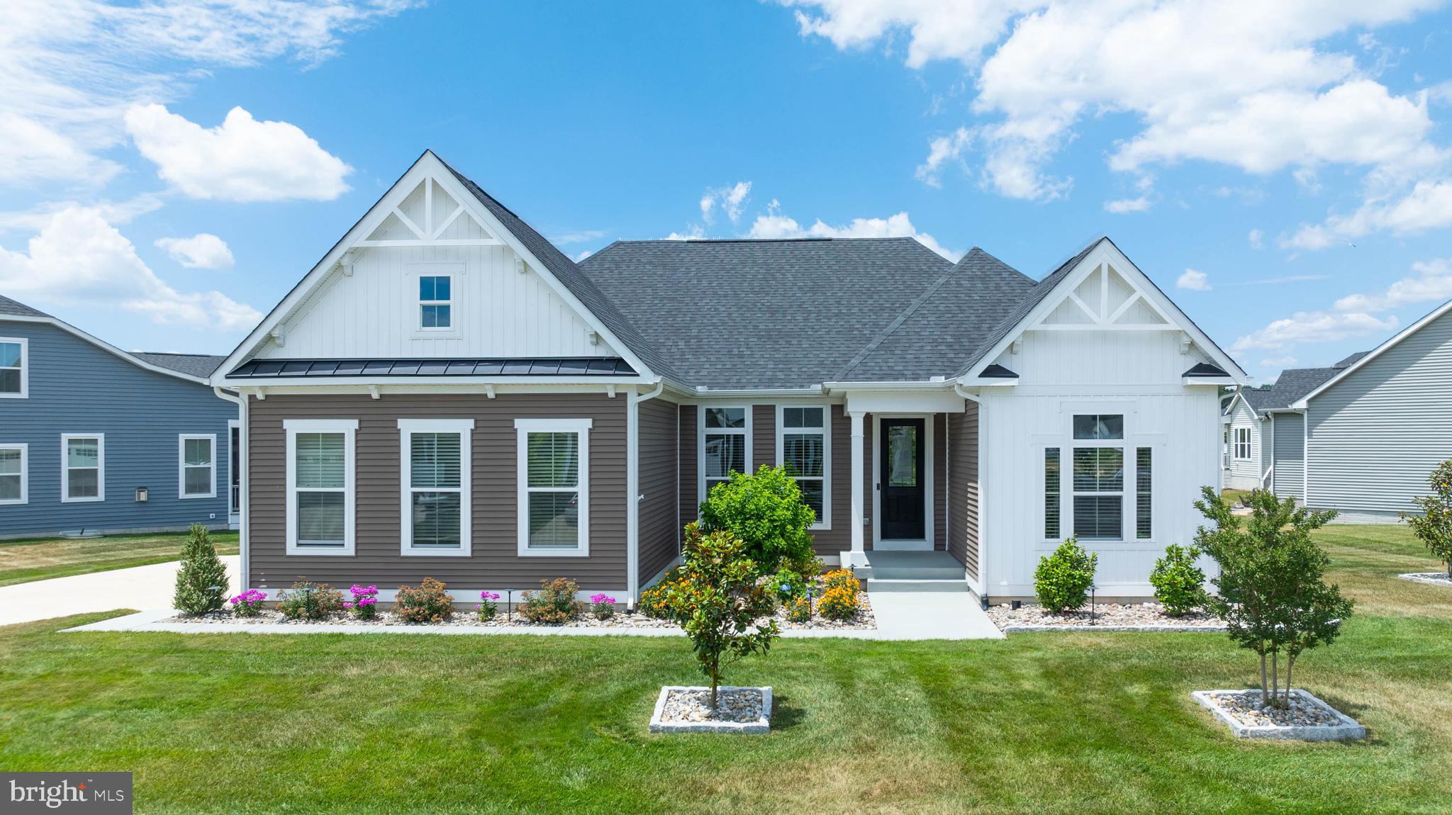 Welcome to your dream home at Marsh Farm Estates! This stunning NVHomes Seabrook floor plan offers 3 bedrooms and 3 bathrooms, with a side-entry garage. As you enter, you're greeted by a spacious study with elegant French doors, perfect for a home office or library. Two guest bedrooms and a full guest bathroom are located near the front of the home. Further in, you'll discover a light-filled great room seamlessly connected to the gourmet kitchen and dining room. The kitchen boasts a wall oven, built-in Advantium convection oven/microwave, gas cooktop, dishwasher, stainless steel appliances, and granite countertops, and a beautiful subway tile backsplash. The expansive kitchen island is ideal for entertaining. From the dining room, step out onto the screened porch to enjoy bug-free evenings with family and friends. The primary suite is tucked away from the guest bedrooms, featuring a luxurious ensuite bathroom with a large walk-in shower, double vanities, a separate water closet, and a linen closet. The drop zone and laundry room are conveniently located near the garage entry. The finished basement is an added bonus, offering an expansive recreation room, a full bathroom, two unfinished storage areas, and an egress window. This home stands out with its private irrigation well, beautiful landscaping, and decorative details. The community HOA dues cover lawn mowing and edging, a community pool and clubhouse, walking trails, and snow removal of the streets. Located just 8 miles from the Rehoboth Beach Boardwalk and 9 miles from Lewes Beach, you're perfectly positioned to enjoy beach days or a leisurely afternoon at the community pool. Don't miss the chance to make this beautiful home yours!