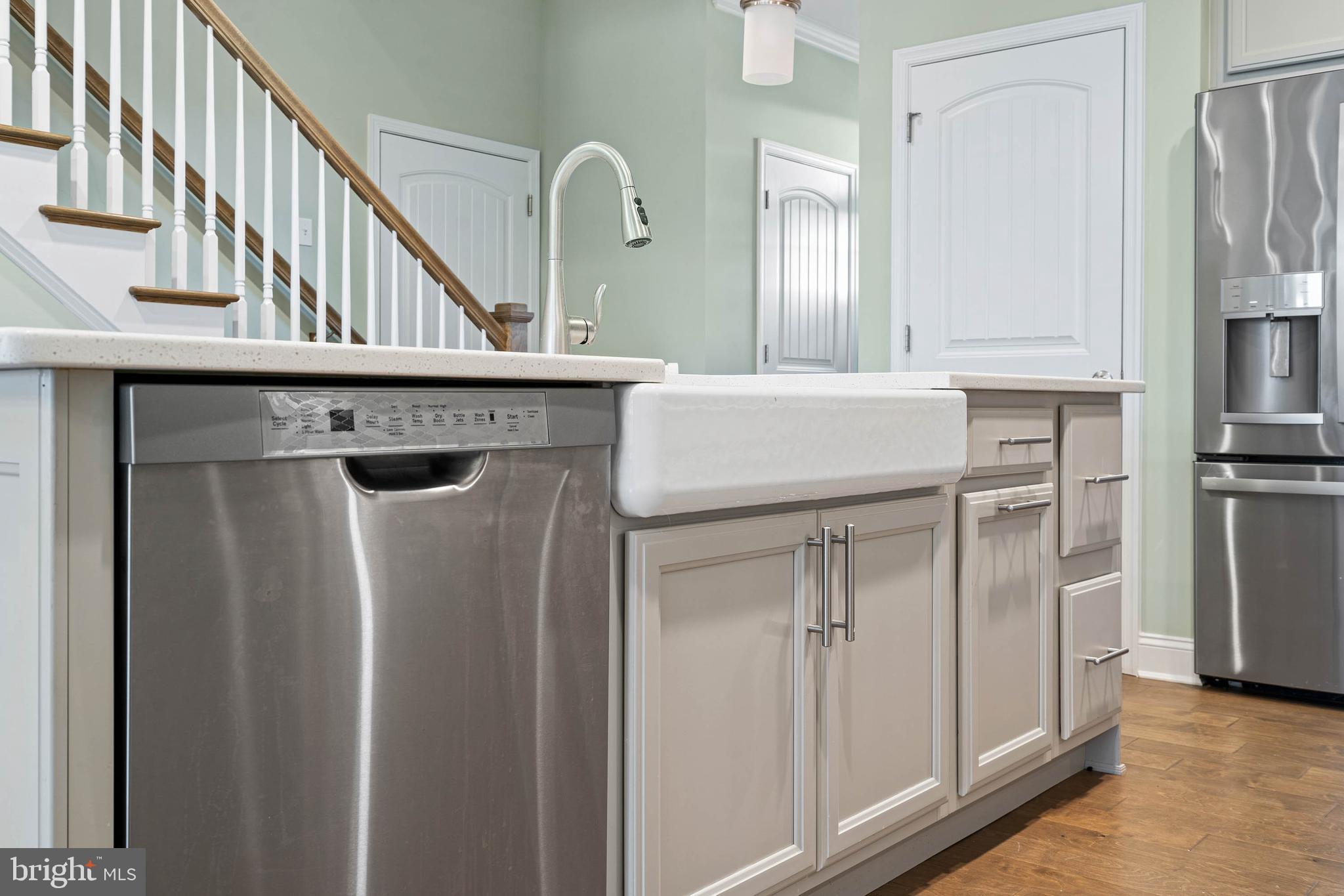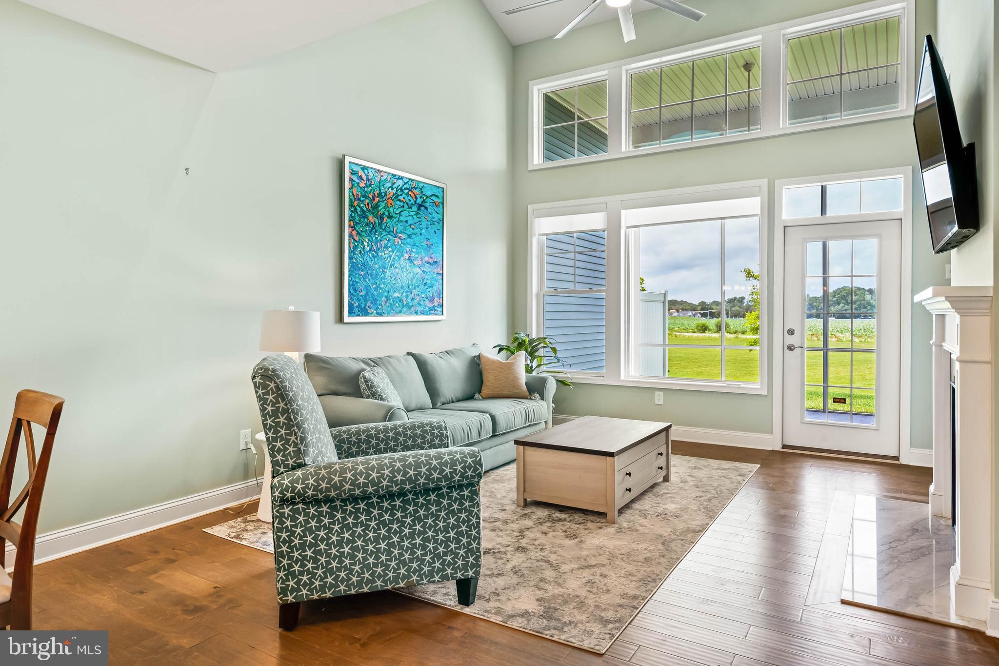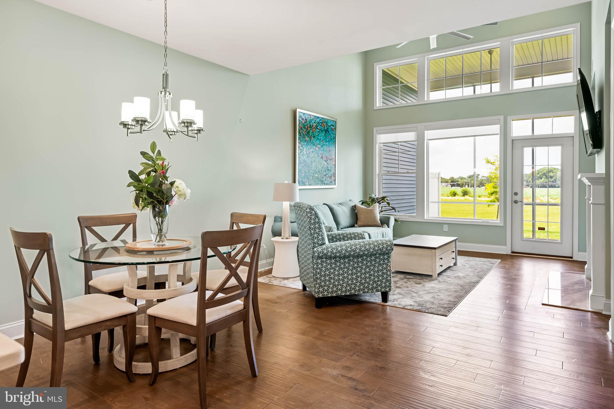 Welcome to your dream villa, just 2.8 miles from the serene Lewes Beach and a mere 1.7 miles from the charming historic downtown of Lewes. This exceptional home is situated on one of the most desirable homesites in the community, offering breathtaking views of lush green spaces and a tranquil community pond. As you step through the front door, you'll be captivated by the light-filled interiors and the stunning design details throughout. The main level features a laundry room equipped with a high-end LG Steam washer/dryer, a convenient half bathroom, and an oversized one-car garage with ample space for parking and storage. The kitchen is a chef's delight with quartz countertops, a large farmhouse sink, a gas cooktop, a stainless steel microwave, a French door refrigerator, and a wall oven. It flows seamlessly into the dining room and great room, which boasts large picturesque windows, 5" wide plank hickory hardwood flooring, and a coastal-inspired color palette. The main living area extends to a large screened porch, perfect for relaxing and enjoying the scenic views.