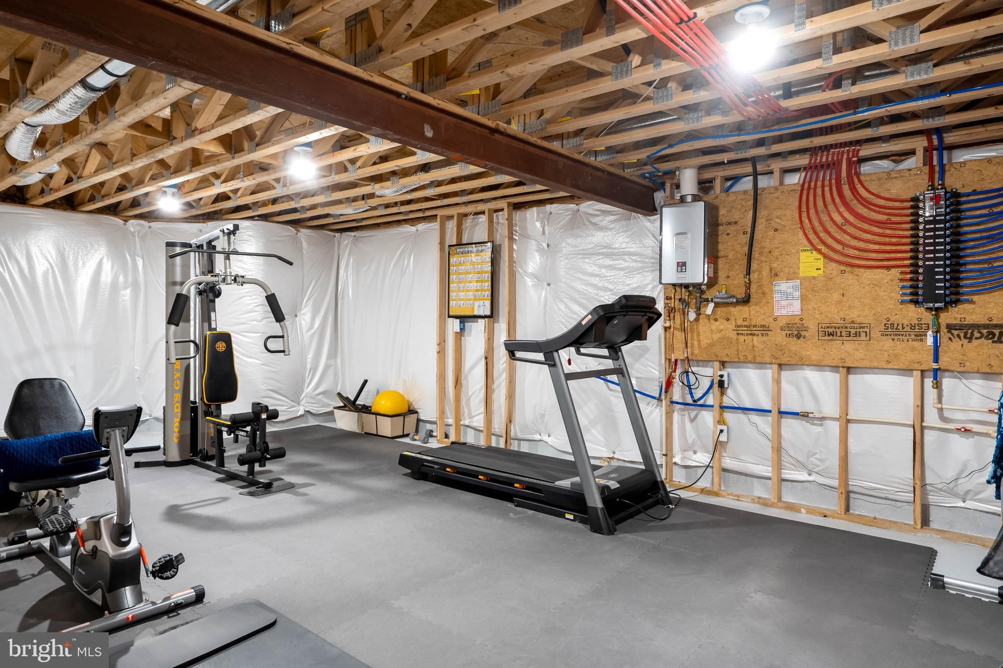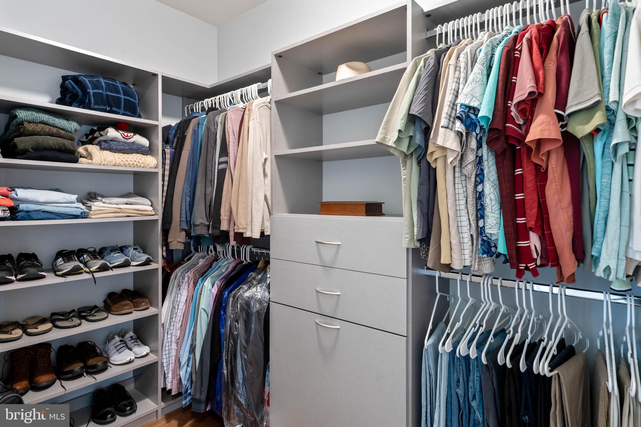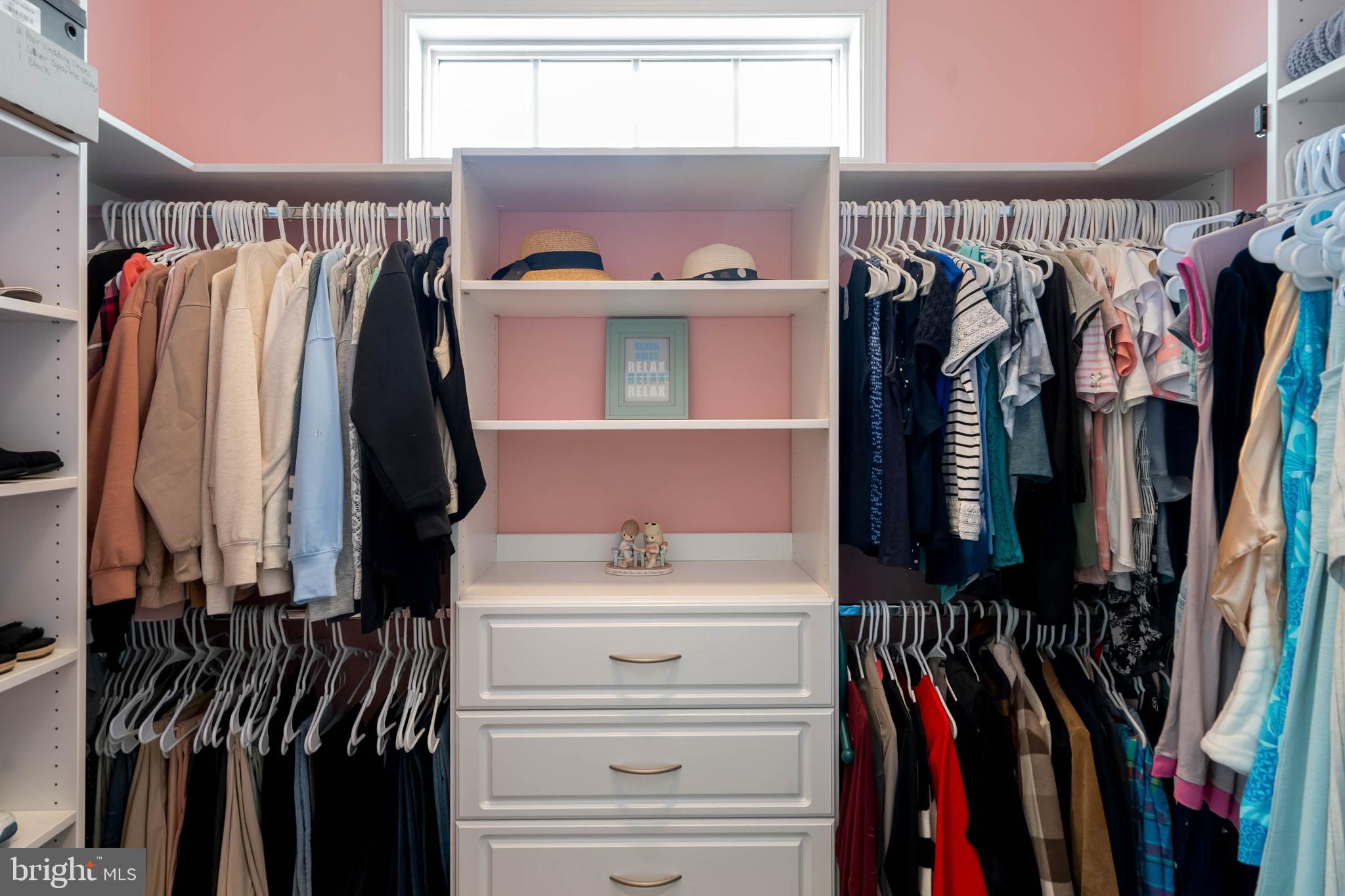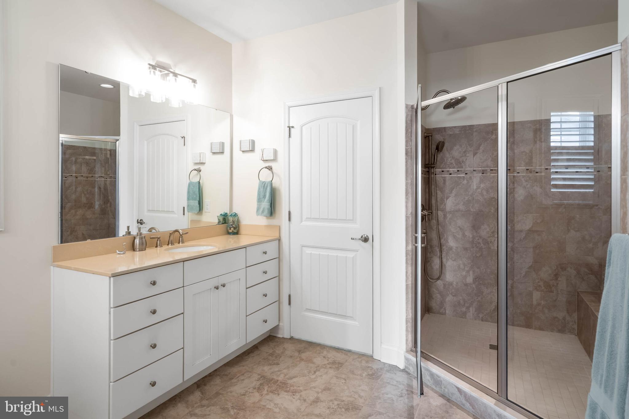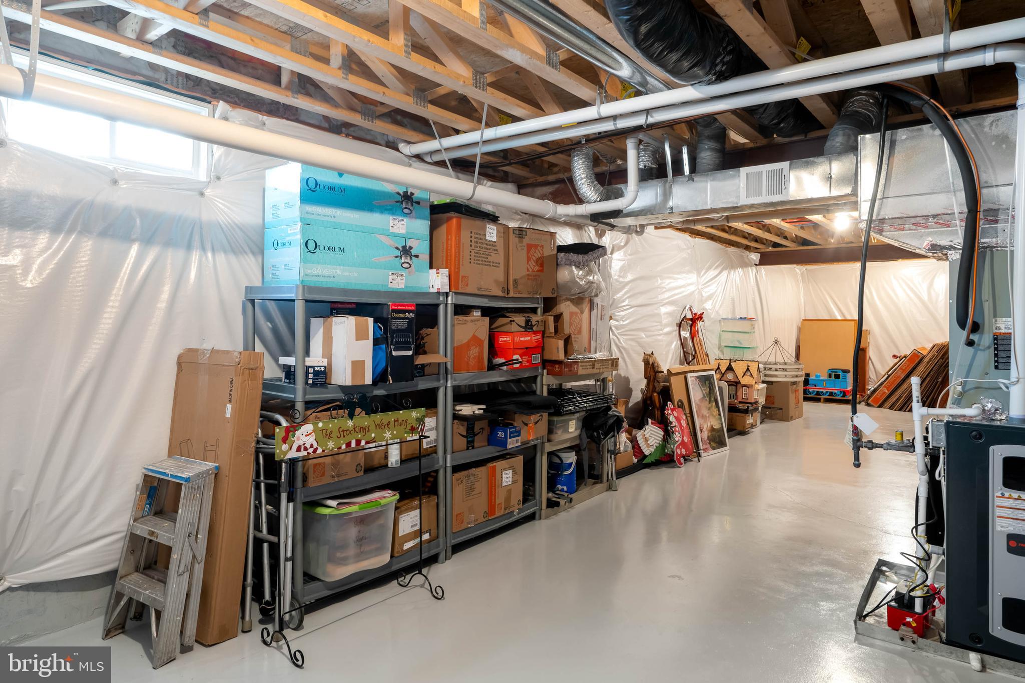 The thoughtfully designed layout places two guest bedrooms, a guest bath, and the laundry room on the left side of the home, while the private primary suite is tucked away on the right. The enlarged primary suite is a true retreat, featuring a tray ceiling with custom trim, a sitting area ideal for a loveseat or desk, and serene pond views through multiple windows. Two custom walk-in closets with shelving and drawers provide exceptional storage, while the spa-like primary bathroom offers separate vanities, a water closet, a linen closet, and a large walk-in shower with a mud-set pan and upgraded tile. The home also features a fully finished basement with a powder room, creating an incredible additional entertaining space, a tankless water heater, and two large unfinished areas, ensuring storage is never an issue. And last but not least, the home offers owner-owned solar panels, a long-term value for any homeowner.